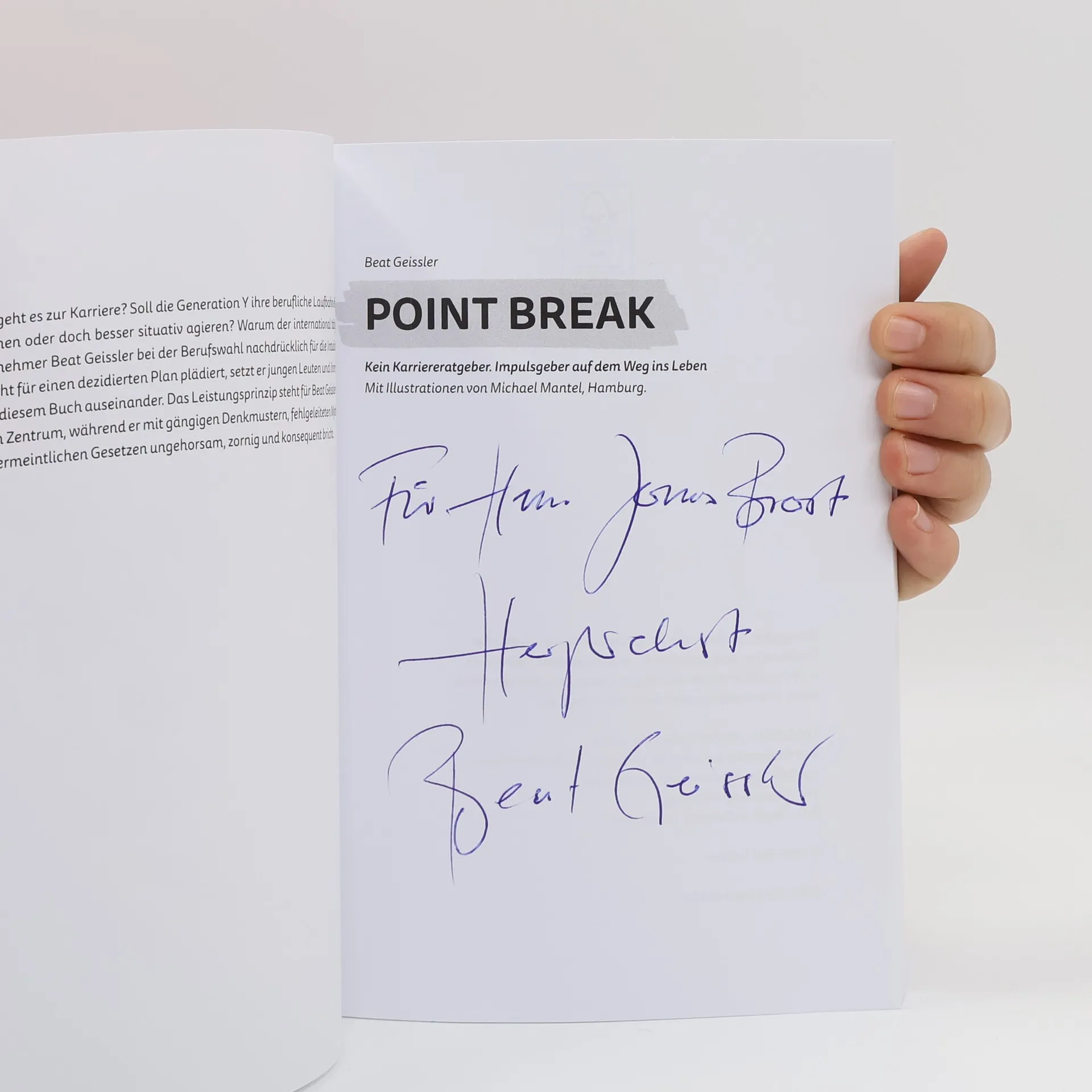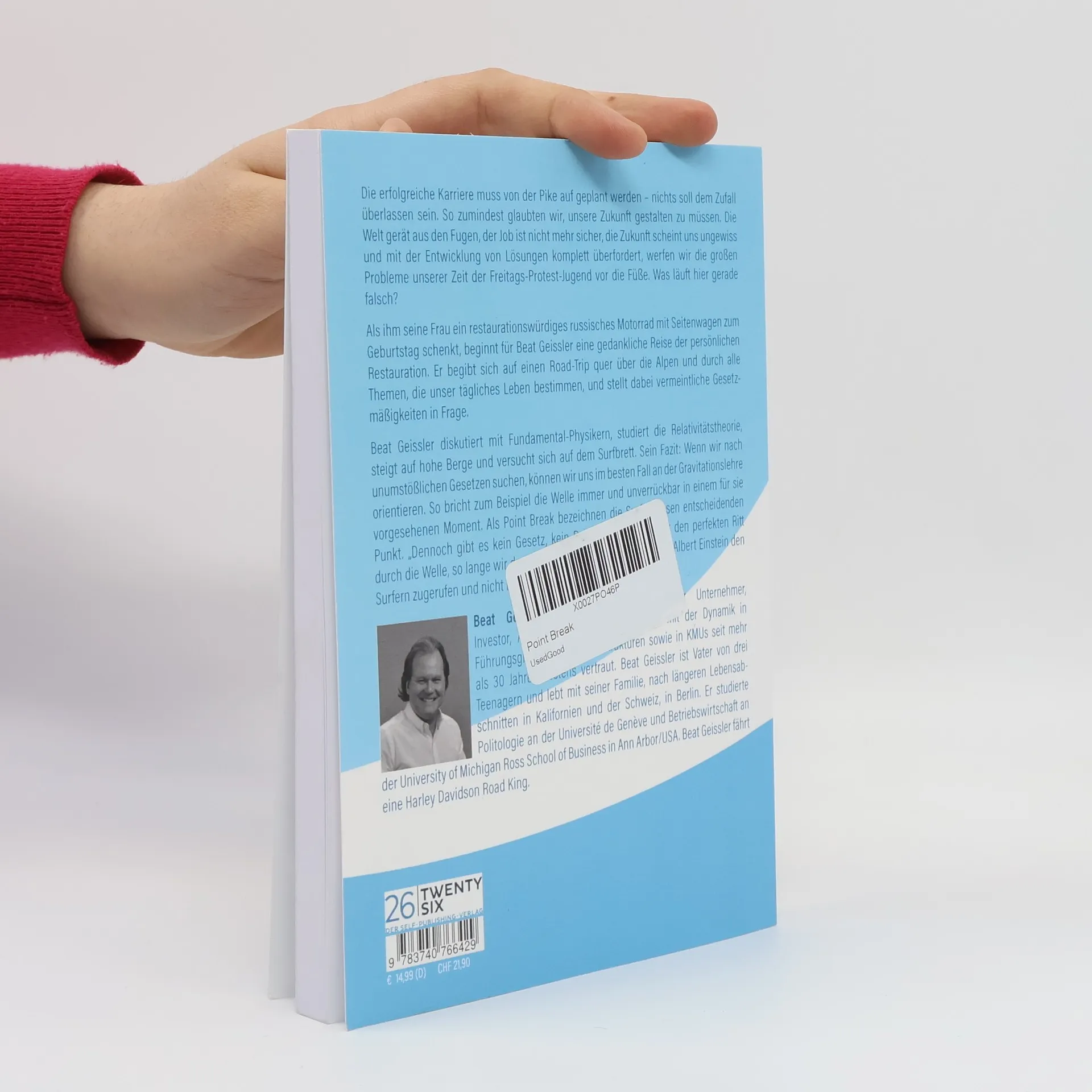 POINT BREAK: Die erfolgreiche Karriere muss von der Pike auf geplant werden. Nichts soll dem Zufall überlassen sein. So zumindest glaubten wir, unsere Zukunft gestalten zu müssen. Die Welt gerät aus den Fugen, der Job ist nicht mehr sicher, die Zukunft scheint uns ungewiss und mit der Entwicklung von Lösungen komplett überfordert, werfen wir die großen Probleme unserer Zeit der Freitags-Protest-Jugend vor die Füße. Was läuft hier gerade falsch? Als ihm seine Frau ein restaurationswürdiges russisches Motorrad mit Seitenwagen zum Geburtstag schenkt, beginnt für Beat Geissler eine gedankliche Reise der persönlichen Restauration. Er begibt sich auf einen Road-Trip quer über die Alpen und durch alle Themen, die unser tägliches Leben bestimmen, und stellt dabei vermeintliche Gesetzmäßigkeiten in Frage. Beat Geissler diskutiert mit Fundamental-Physikern, studiert die Relativitätstheorie, steigt auf hohe Berge und versucht sich auf dem Surfbrett. Sein Fazit: Wenn wir nach unumstößlichen Gesetzen suchen, können wir uns im besten Fall an der Gravitationslehre orientieren. So bricht zum Beispiel die Welle immer und unverrückbar in einem für sie vorgesehenen Moment. Als Point Break bezeichnen die Surfer diesen entscheidenden Punkt. "Dennoch gibt es kein Gesetz, kein Rezept, keinen Plan für den perfekten Ritt durch die Welle, so lange wir den Point Break nicht erkennen", hätte Albert Einstein den Surfern zugerufen und nicht nur ihnen.