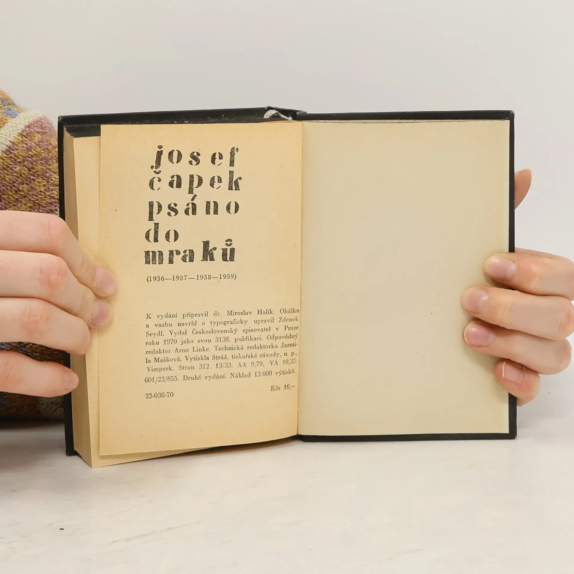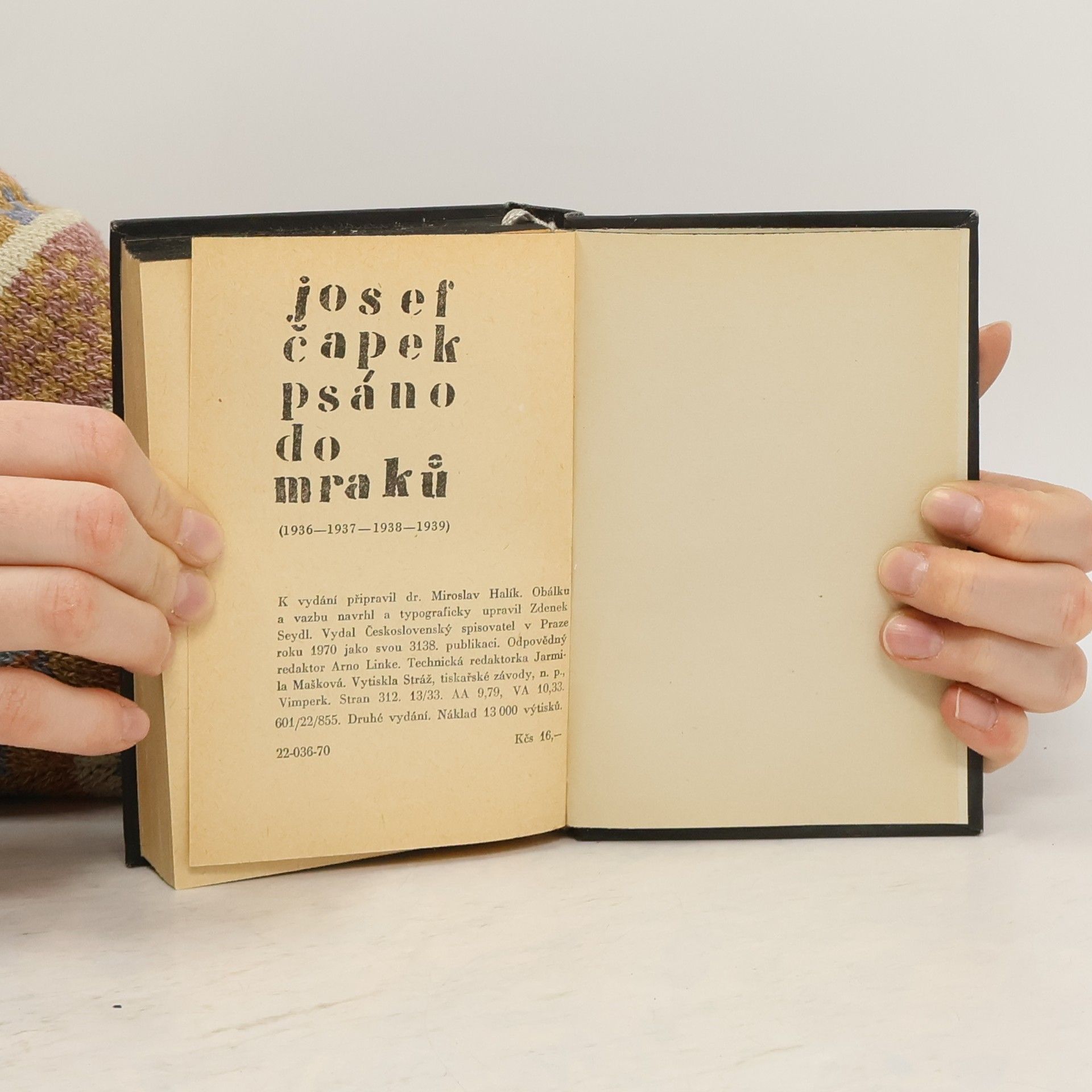 Psáno do mraků. 1936-1939, Josef Čapek