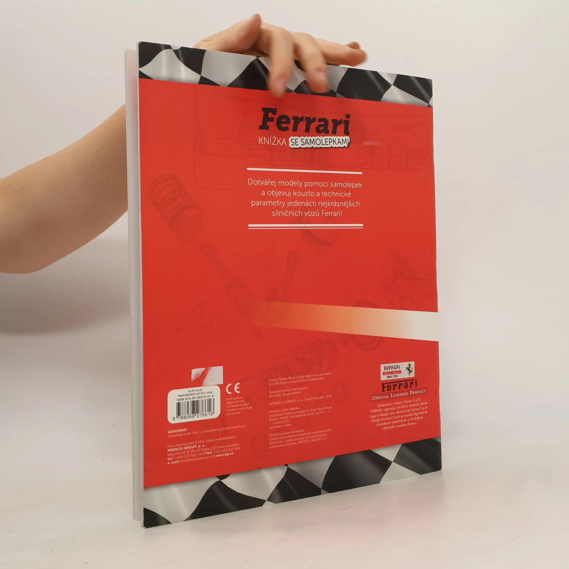 Objevujte dokonalé tvary nejkrásnějších silničních automobilů proslulé značky Ferrari a užijte si spoustu zábavy s doplňováním atraktivních modelů samolepkami. Kromě zábavy vás čeká i řada zajímavých informací o těchto úžasných nablýskaných strojích a jejich technických parametrech.