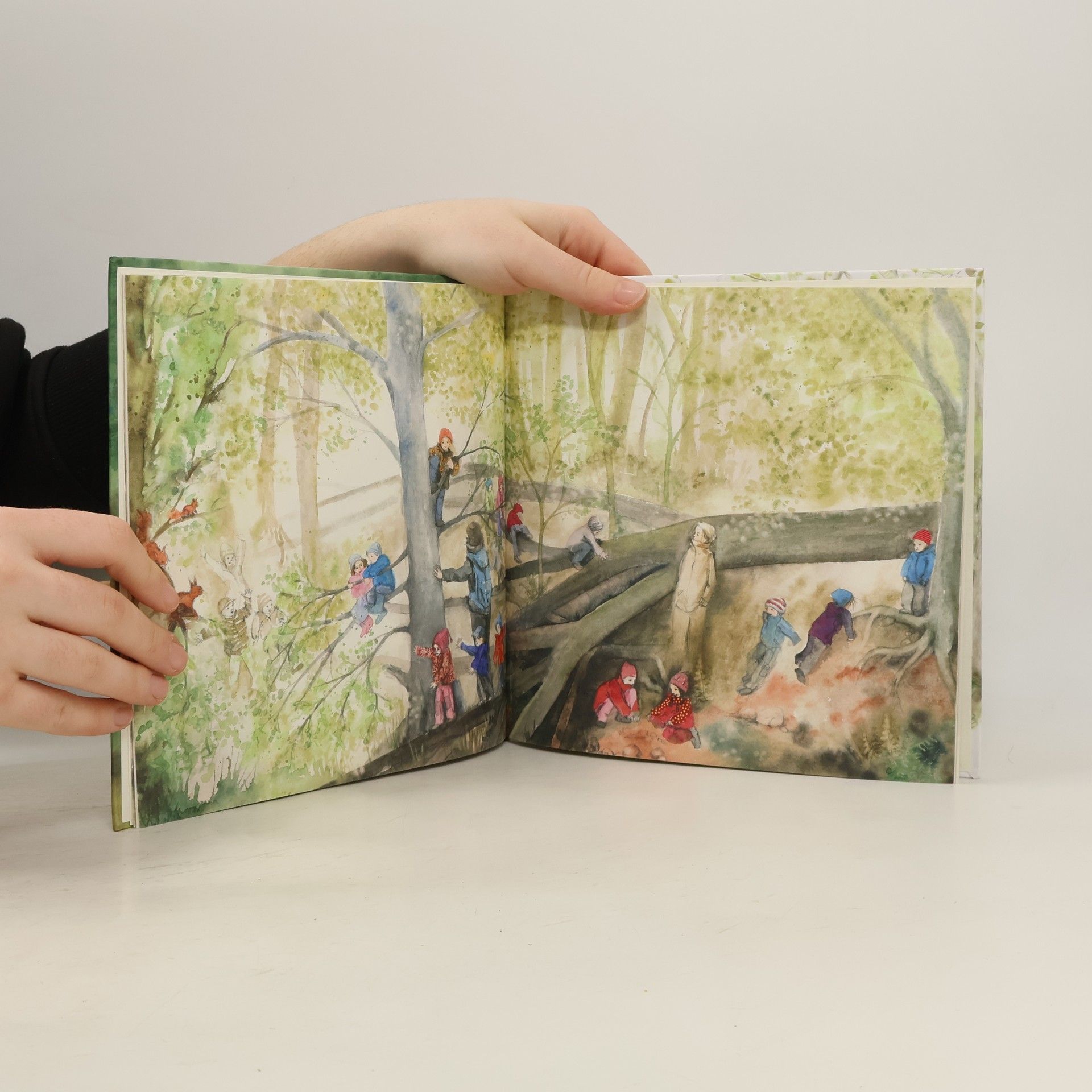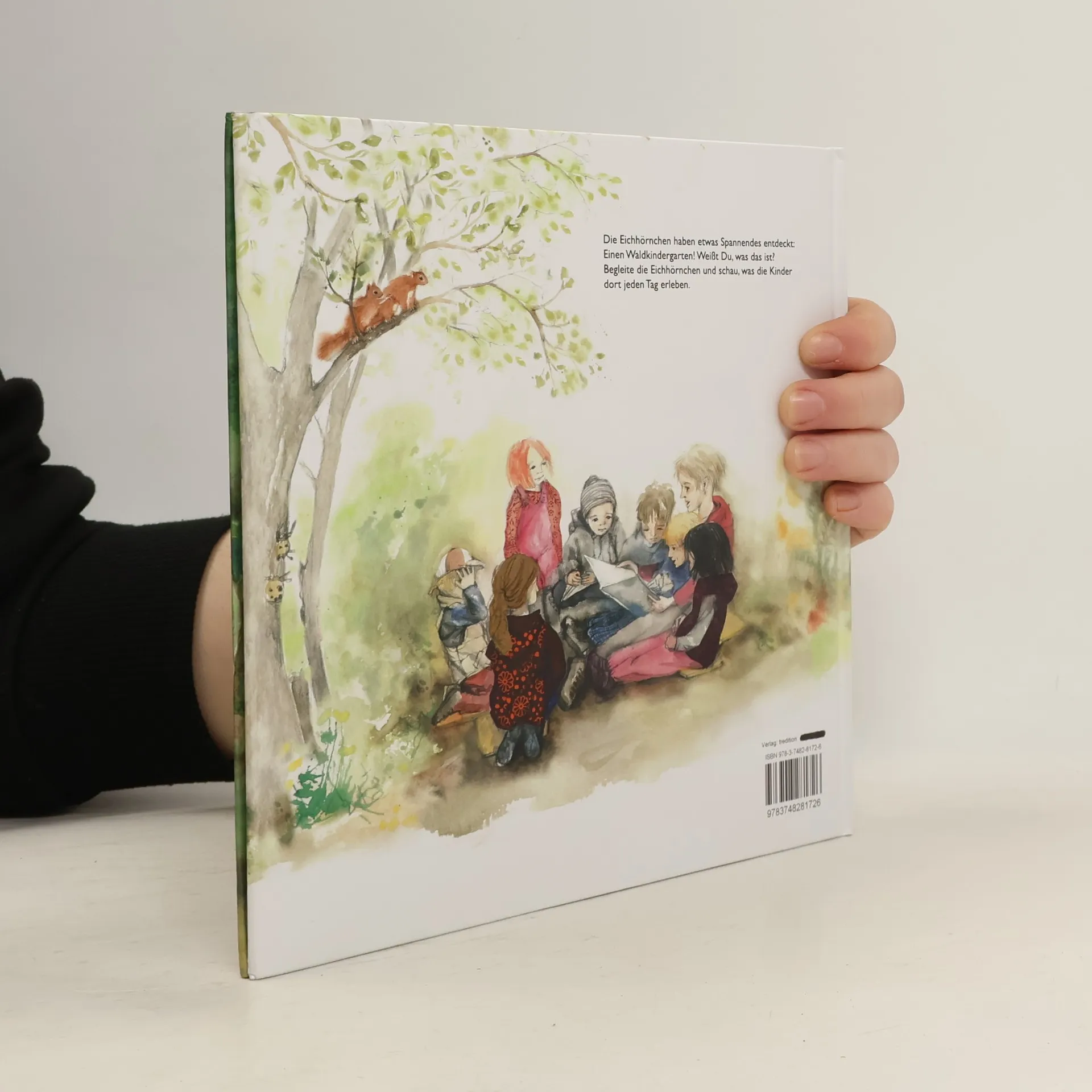 Waldkindergärten sind ein wichtiges Thema. In Deutschland gibt es über 1500, und viele Eltern würden ihrem Kind gerne über ein Bilderbuch den Einstieg erleichtern. Mit diesem Buch, das typische Ereignisse in einem Waldkindergarten zeigt, können sich Familien mit ihren kleinen Kindern auf den Waldkindergarten vorbereiten und freuen. Im Buch lasse ich Eichhörnchen das Treiben der Menschenkinder beobachten. So kann ich den Tagesablauf und Besonderheiten in einem Waldkindergarten gut für Außenstehende schildern. Dargestellt ist ein Waldkindergarten mit Gelände, Unterstand und einem Bauwagen zum Verkriechen bei zu starkem Regen oder Frost. Da Wetter und Jahreszeiten wichtig sind im Waldkindergarten, ändern sie sich im Verlauf des Buches. Das Buch fängt im Frühling an und endet im Winter. Die Leser erleben also nicht nur einen Tag, sondern auch ein ganzes Jahr im Waldkindergarten. Die bunten Bilder, liebevoll aquarelliert und mit vielen Details, laden ein, den Wald mit den Kindern zu erleben, und lassen die Betrachter eintauchen in den naturnahen Alltag dieser Kinder. Der Wald ist eine Ideale Umgebung für die Kinder, intensiv und selbstvergessen zu spielen; es ist wunderbar, sie dabei zu beobachten.