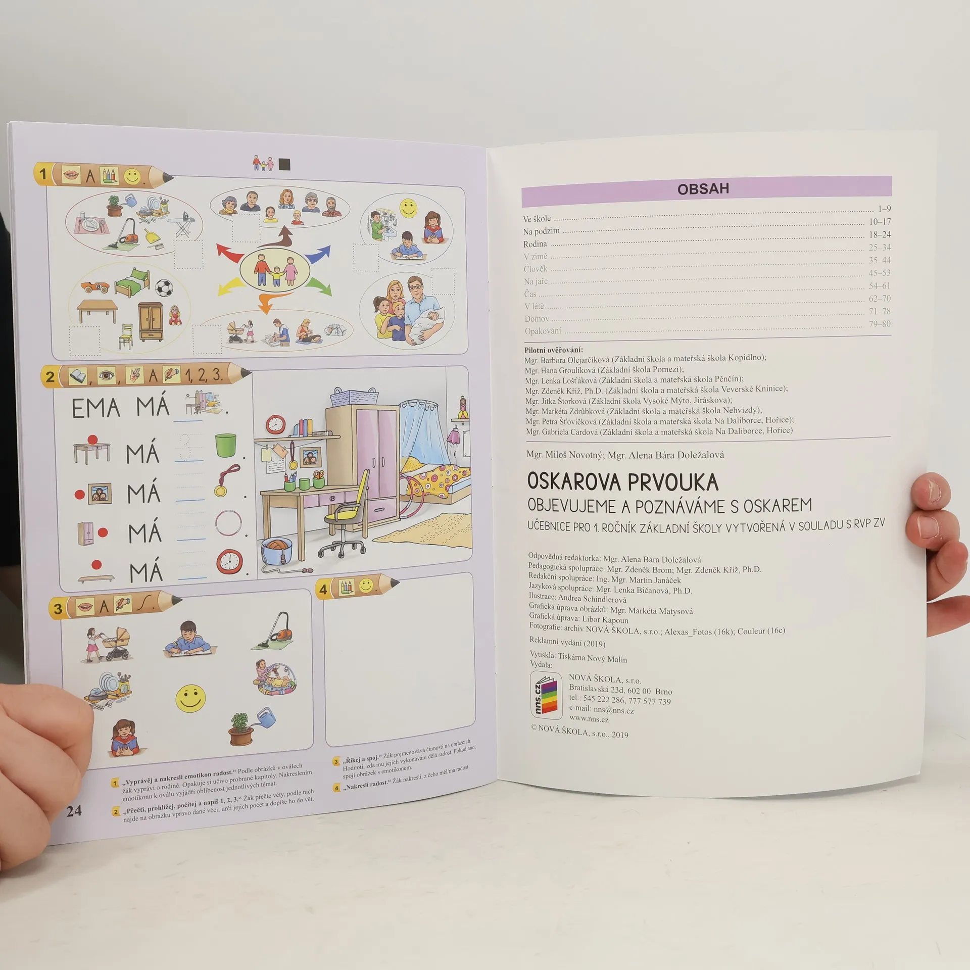 Soubor pro 1. ročník zahrnuje pracovní učebnici Oskarova prvouka 1, metodický průvodce a sadu pokusů. Přílohou učebnice je sada samolepek, s kterými žáci pracují u vybraných cvičení. Řada bude následně rozšířena ještě o nové pracovní sešity pro 2. a 3. ročník, které budou vytvořeny ke stávajícím učebnicím Já a můj svět. Každý vyučující si tak bude moci zvolit, zda ve 2. a 3. ročníku bude využívat stávající učebnice Já a můj svět 2 a 3 s původními pracovními sešity, nebo s Oskarem. NNS1A74
