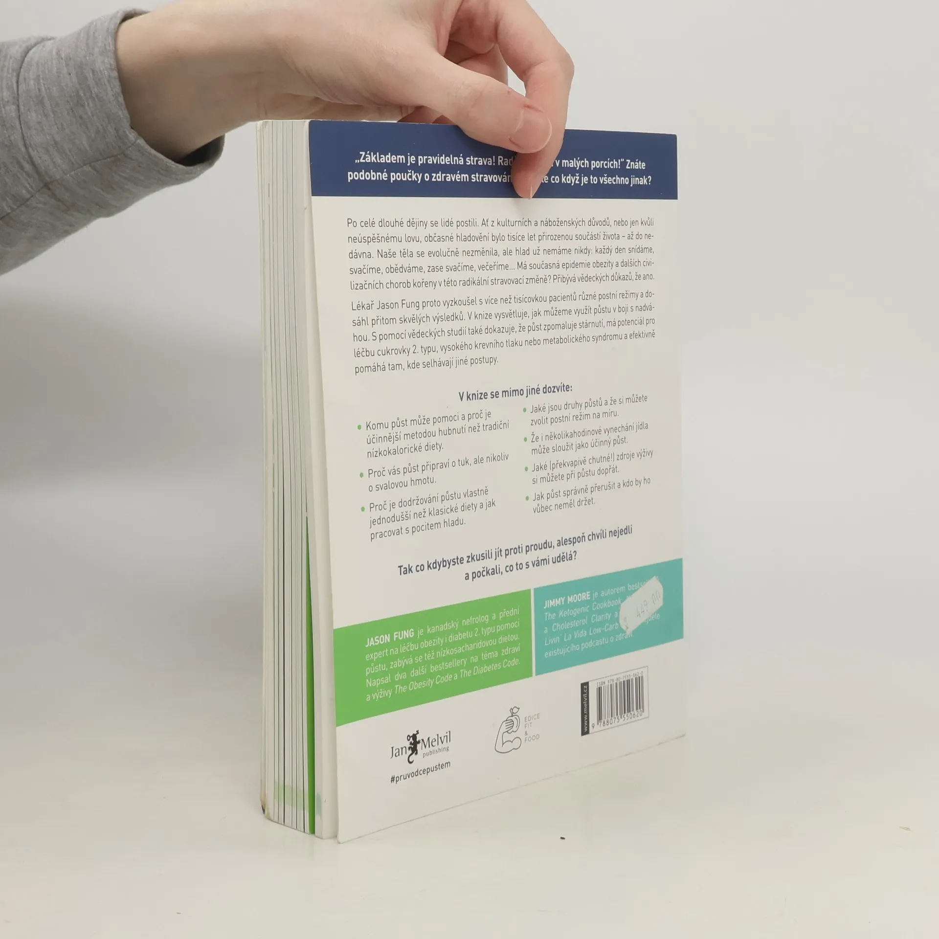 Po celé dějiny se lidé postili z různých důvodů, ať už kulturních, náboženských nebo z nedostatku jídla. Hladovění bylo přirozenou součástí života, ale dnes se stravovací návyky radikálně změnily. Tato změna může být spojena s rostoucími problémy, jako je obezita a další civilizační choroby. Lékař Jason Fung zkoumal různé postní režimy s více než tisícovkou pacientů a dosáhl výjimečných výsledků. Vysvětluje, jak může půst pomoci v boji proti nadváze a přináší vědecké důkazy o jeho prospěšnosti, včetně zpomalení stárnutí a léčby cukrovky 2. typu, vysokého krevního tlaku či metabolického syndromu. Zjistíte, komu půst může pomoci a proč je efektivnější než tradiční diety. Půst vás zbaví tuku, nikoli svalové hmoty, a je jednodušší než dodržování klasických diet. Seznámíte se s různými typy půstů a možností zvolit si režim na míru. I několikahodinové vynechání jídla může být účinné. Kniha také nabízí překvapivé a chutné zdroje výživy během půstu a rady, jak ho správně přerušit. Zjistíte, kdo by měl půst vynechat. Co kdybyste zkusili jít proti proudu a na chvíli se zdrželi jídla?