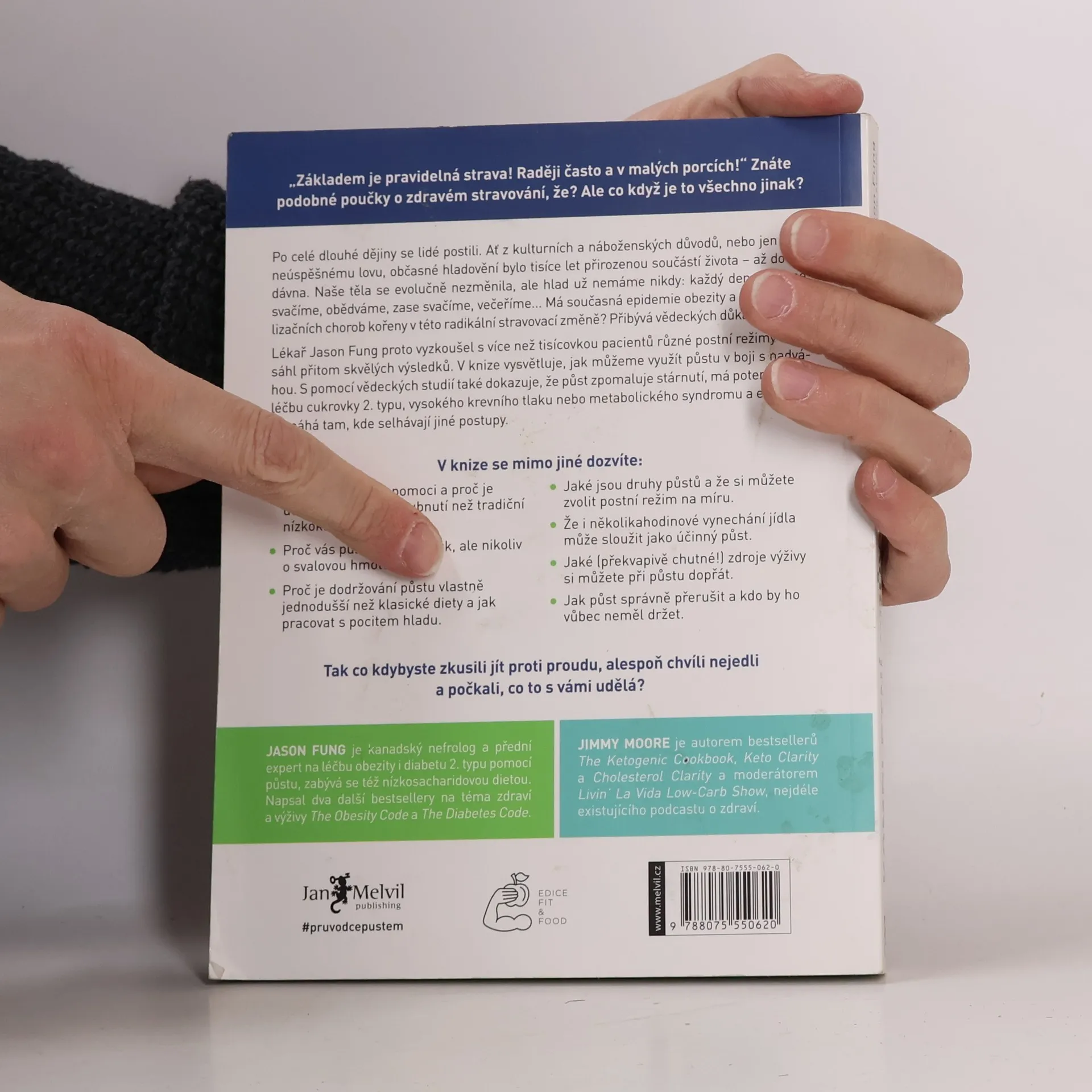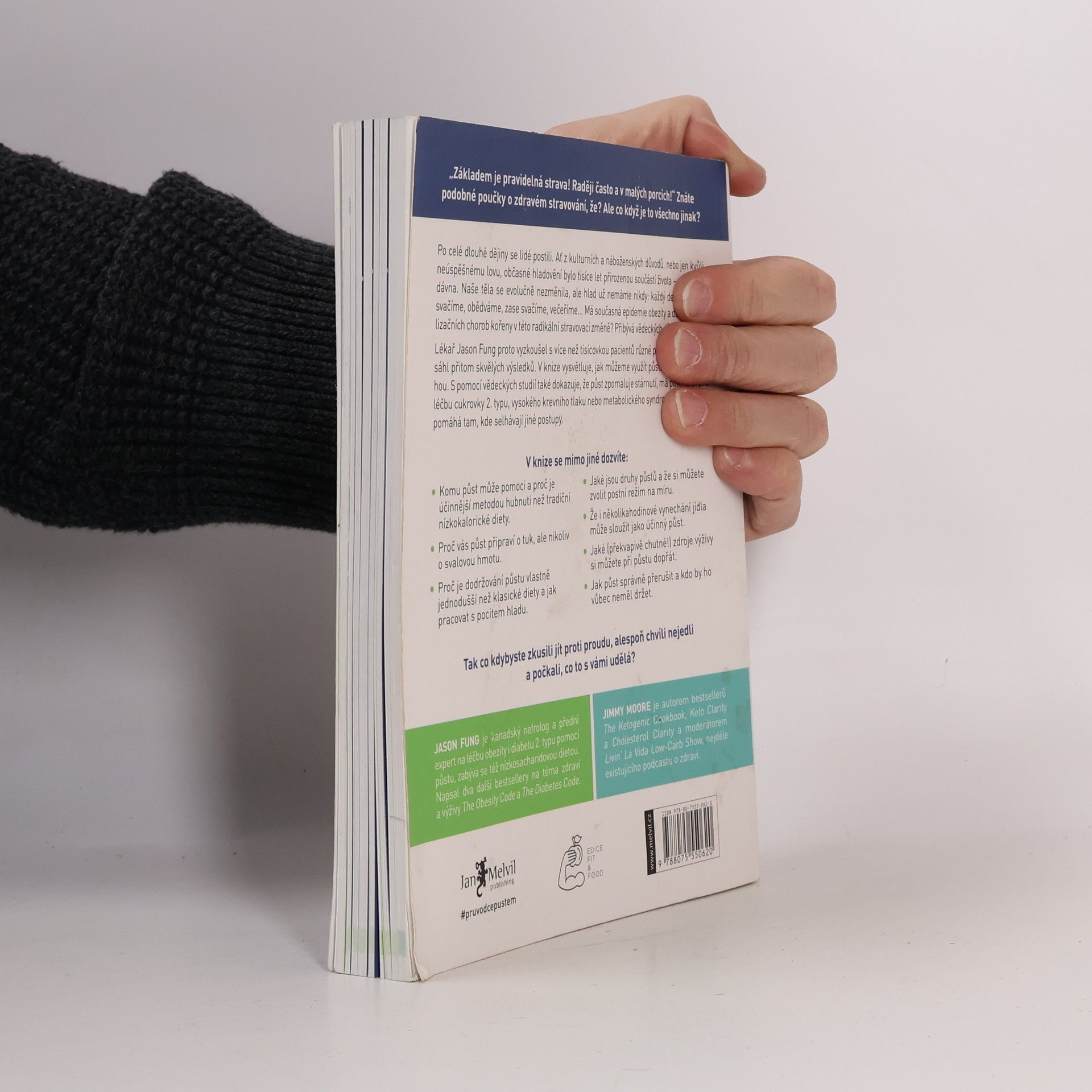 Po celé dějiny se lidé postili z různých důvodů, ať už kulturních, náboženských nebo z nedostatku jídla. Hladovění bylo přirozenou součástí života, ale dnes se stravovací návyky radikálně změnily. Tato změna může být spojena s rostoucími problémy, jako je obezita a další civilizační choroby. Lékař Jason Fung zkoumal různé postní režimy s více než tisícovkou pacientů a dosáhl výjimečných výsledků. Vysvětluje, jak může půst pomoci v boji proti nadváze a přináší vědecké důkazy o jeho prospěšnosti, včetně zpomalení stárnutí a léčby cukrovky 2. typu, vysokého krevního tlaku či metabolického syndromu. Zjistíte, komu půst může pomoci a proč je efektivnější než tradiční diety. Půst vás zbaví tuku, nikoli svalové hmoty, a je jednodušší než dodržování klasických diet. Seznámíte se s různými typy půstů a možností zvolit si režim na míru. I několikahodinové vynechání jídla může být účinné. Kniha také nabízí překvapivé a chutné zdroje výživy během půstu a rady, jak ho správně přerušit. Zjistíte, kdo by měl půst vynechat. Co kdybyste zkusili jít proti proudu a na chvíli se zdrželi jídla?
