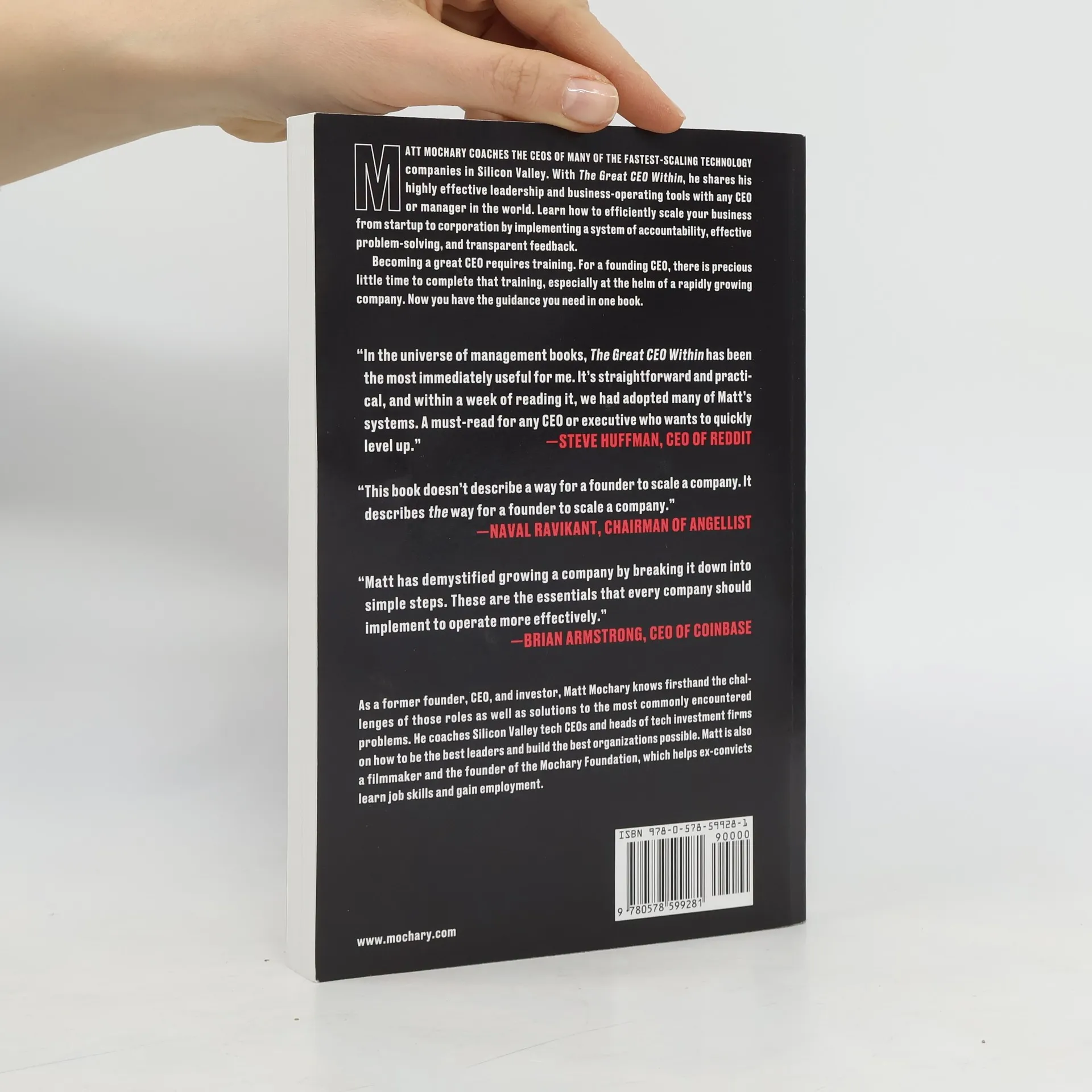 Matt Mochary coaches the CEOs of many of the fastest-scaling technology companies in Silicon Valley. With The Great CEO Within, he shares his highly effective leadership and business-operating tools with any CEO or manager in the world. Learn how to efficiently scale your business from startup to corporation by implementing a system of accountability, effective problem-solving, and transparent feedback. Becoming a great CEO requires training. For a founding CEO, there is precious little time to complete that training, especially at the helm of a rapidly growing company. Now you have the guidance you need in one book.
