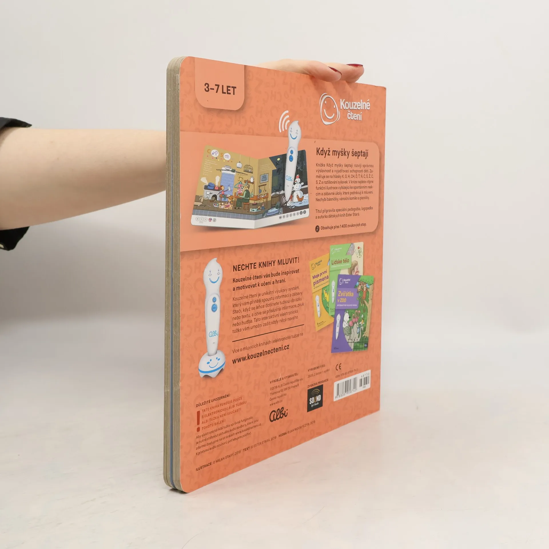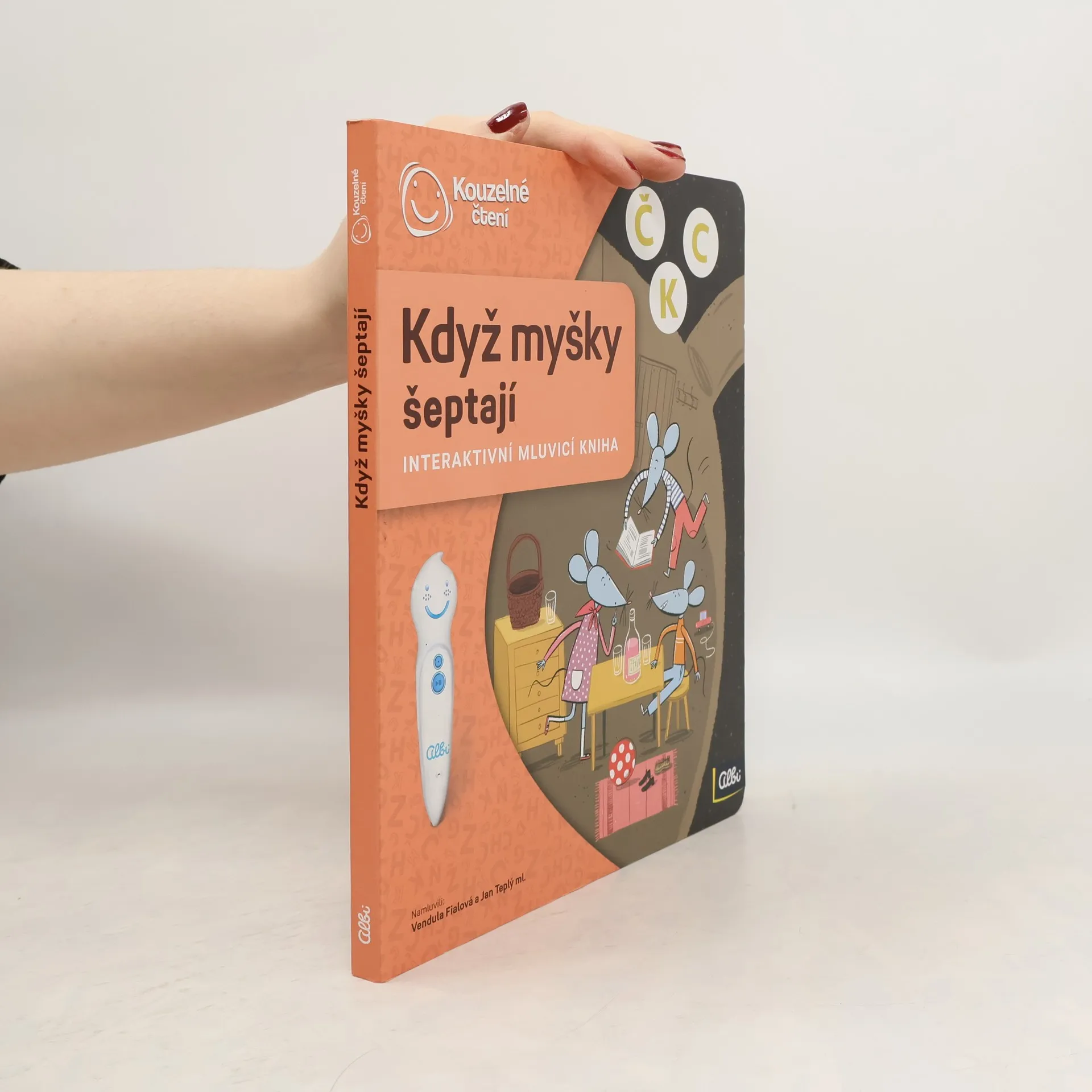 Tato mluvící knížka je zde od toho, aby dětem pomohla rozvázat jejich někdy neposlušné jazyky. Najdete v ní nejen myšky, ale i kouzelníka a plno dalších roztomilých ilustrací. K nim stačí přiložit elektronickou tužku od Albi a začne se přehrávat čtený text. Kromě poslouchání je však k dispozici také spousta dalších interaktivních módů, které dětem zábavnou a veselou formou pomáhají naučit se správně vyslovovat hlásky K, G, H, CH, Ď, Ť, Ň, Č, Š, Ž, C, S a Z, ale například i slabiky bě, pě a vě. Celá tato knížka z edice Kouzelné čtení obsahuje více než 1400 zvuků a textů. Elektronická Albi tužka není součástí knihy. Prodává se samostatně.