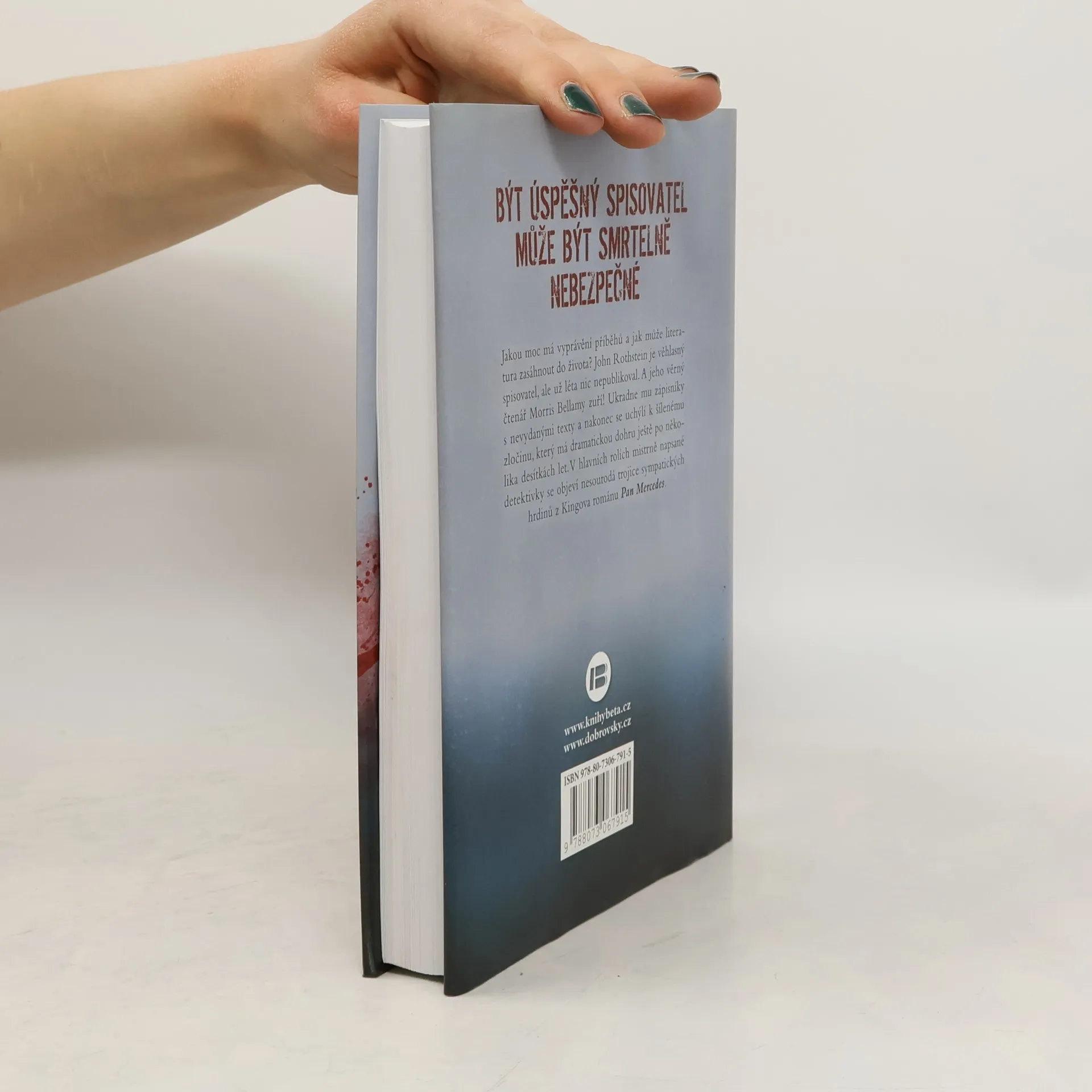 Kniha o tom, jakou moc má vyprávění příběhů a jak literatura utváří život. John Rothstein je věhlasný spisovatel, avšak léta už nic nepublikoval, a navíc se začal věnovat reklamě. A jeho věrný čtenář Morris Bellamy zuří. Spisovatele nakonec zabije a vyloupí mu sejf s rukopisy nevydaných knih. Kořist si ukryje, ale pak se ocitne ve vězení kvůli jinému zločinu. Po několika desítkách let najde schovaný lup malý chlapec, ale Morris Bellamy se pokladu za žádnou cenu nechce vzdát… V hlavních rolích mistrně napsaného románu se objeví nesourodá trojice pátračů z Kingovy detektivky Pan Mercedes.