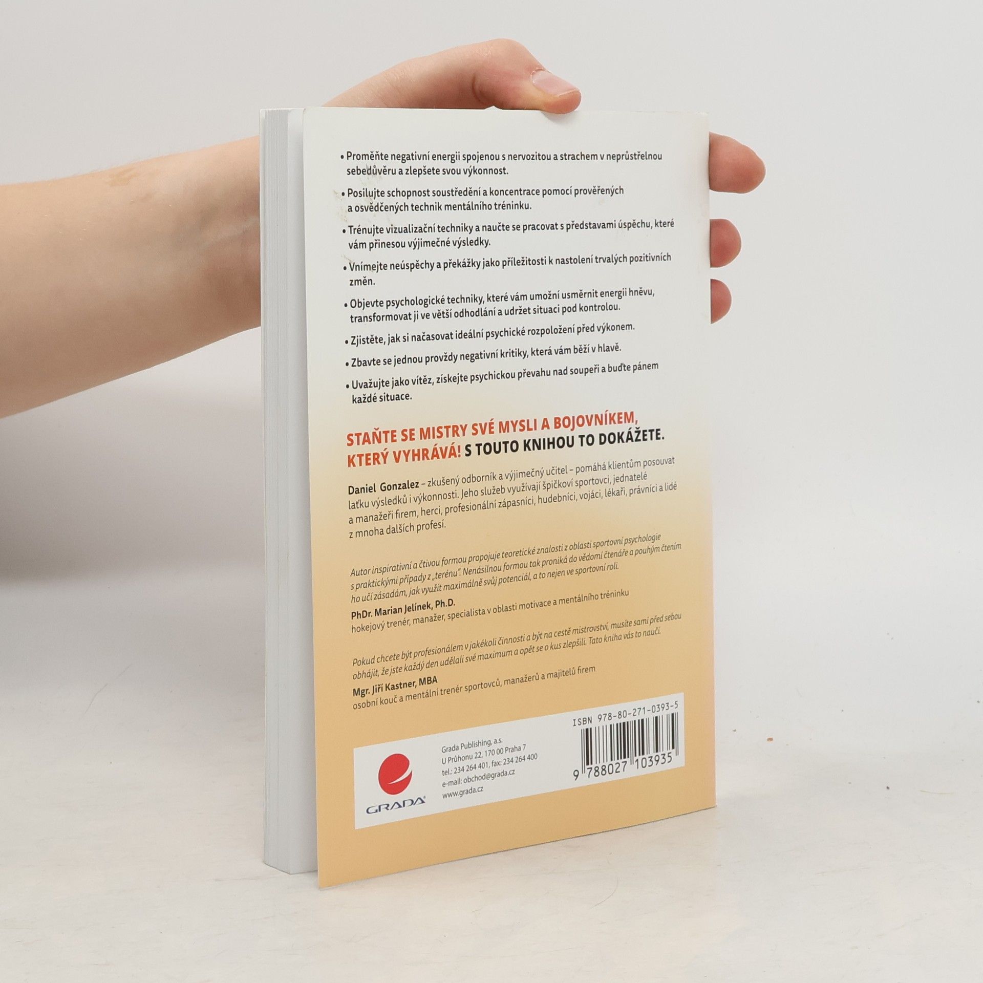 Naučte se díky knize ovládnout svou nervozitu, strach či hněv, zlepšete svou koncentraci, psychiku a výkonnost, naučte se brát neúspěchy a překážky, které nevyhnutelně přicházejí, jako příležitost k nastolení trvalých pozitivních změn, zbavte se negativní kritiky, kterou máte ve své hlavě. Neboť vše, co se odehrává ve vaší hlavě, výrazně ovlivňuje kvalitu vašich výkonů. Ve čtivé a inspirující knize najdete strhující příběhy z autorova života, kdy působil jako pilot námořnictva, federální agent, armádní specialista v oboru kybernetické bezpečnosti, zápasník a držitel černého opasku v brazilském džiu-džitsu nebo výkonnostní trenér. Tyto adrenalinové zážitky vyvažují vzpomínky na starého mistra bojových umění Lea, který svými moudrými radami pomohl autorovi a mnoha sportovcům k výborným výkonům a vítězstvím a jehož prostřednictvím se čtenář seznamuje se základními principy mentálního tréninku a ovládání mysli. Staňte se mistry své mysli a vítězi!