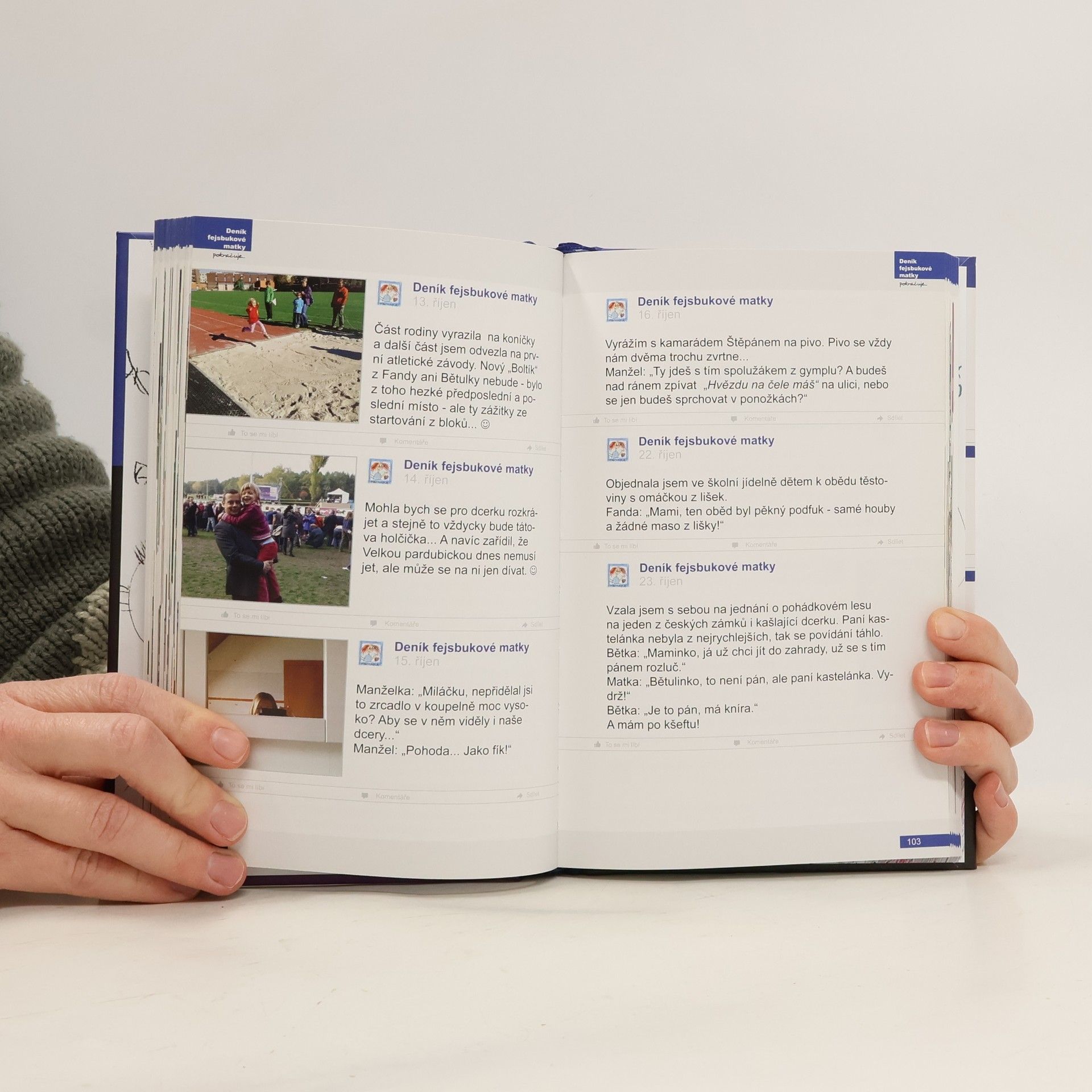 Specifický smysl pro humor, sebeironie a další stovky vtipných příběhů mámy od tří dětí, kterou jste mohli poznat už v prvním díle Deníku fejsbukové matky, tlačí na naši bránici snad s ještě větší silou než předtím. Peripetie, které rodiče, dvojčata Viki a Fandu, jejich malou sestru Bětku a domácí zvěřinec denně potkávají, tentokráte zahrnují statusy z let 2012 – 2014. Jak to dopadne, když se přetížená matka rozhodne ještě kromě plození, rození, kojení a výchovy dětí podnikat? Věřte, že se budete smát od první do poslední stránky. Stejně jako u prvního dílu i zde platí, že knihu můžete začít číst zepředu, zezadu, nebo třeba i odprostřed, a přesto vám nic neuteče. Všude se chytnete a všude se poznáte. V tomto vydání navíc najdete originální bonusový materiál.