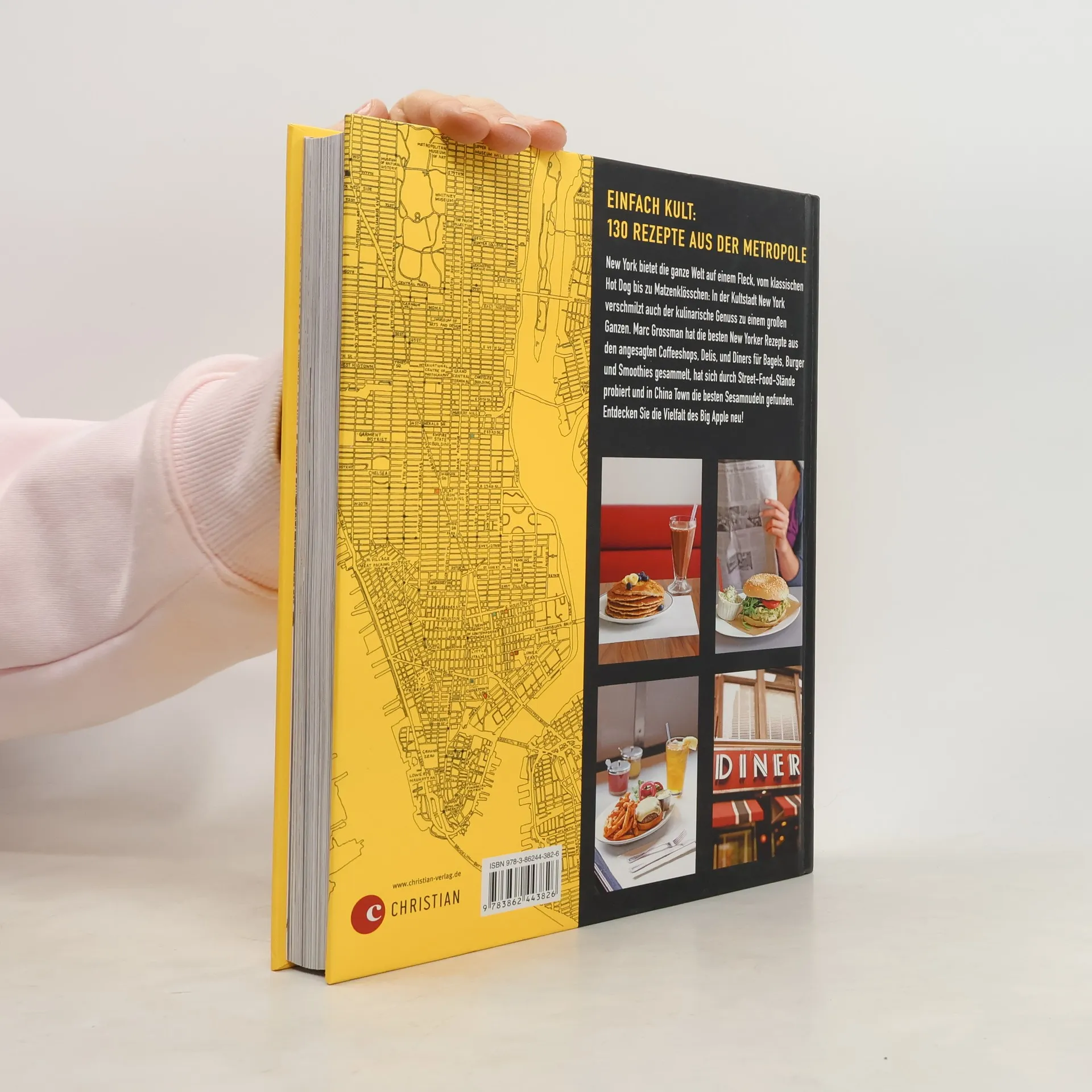 Es ist die ganze Welt auf einem Fleck: New York. Marc Grossman nimmt uns mit in Coffeeshops, Delis, zum Straßenimbiss und in die klassischen American Diner. Dort ist New York entschleunigt: Wir hören beim Blättern genussvolles Knuspern von selbst gemachten Oreos, saftiges Beißen in einen bunt belegten Cheeseburger oder glückliches Seufzen nach einem Erdnuss-Butter-Smoothie …