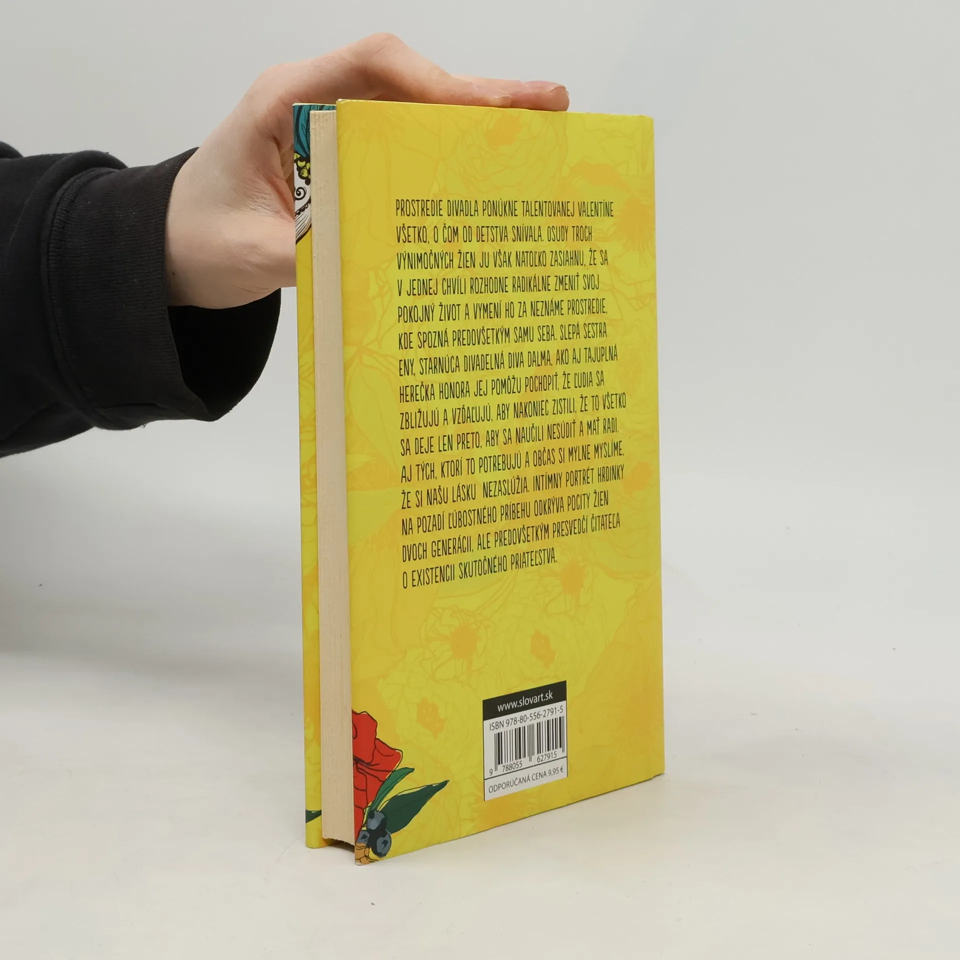 Prostredie divadla ponúkne talentovanej Valentíne všetko, o čom od detstva snívala. Osudy troch výnimočných žien ju však zasiahnu natoľko, že sa v jednej chvíli rozhodne radikálne zmeniť svoj pokojný život a vymení ho za neznáme prostredie, kde spozná predovšetkým samu seba. Slepá sestra Eny, starnúca divadelná diva Dalma, ako aj tajuplná herečka Honora jej pomôžu pochopiť, že ľudia sa zbližujú a vzďaľujú, aby nakoniec zistili, že to všetko sa deje len preto, aby sa naučili nesúdiť a mať radi. Aj tých, ktorí to potrebujú a občas si mylne myslíme, že si našu lásku nezaslúžia. Intímny portrét hrdinky na pozadí ľúbostného príbehu odkrýva pocity žien dvoch generácii, ale predovšetkým presvedčí čitateľa o existencii skutočného priateľstva.