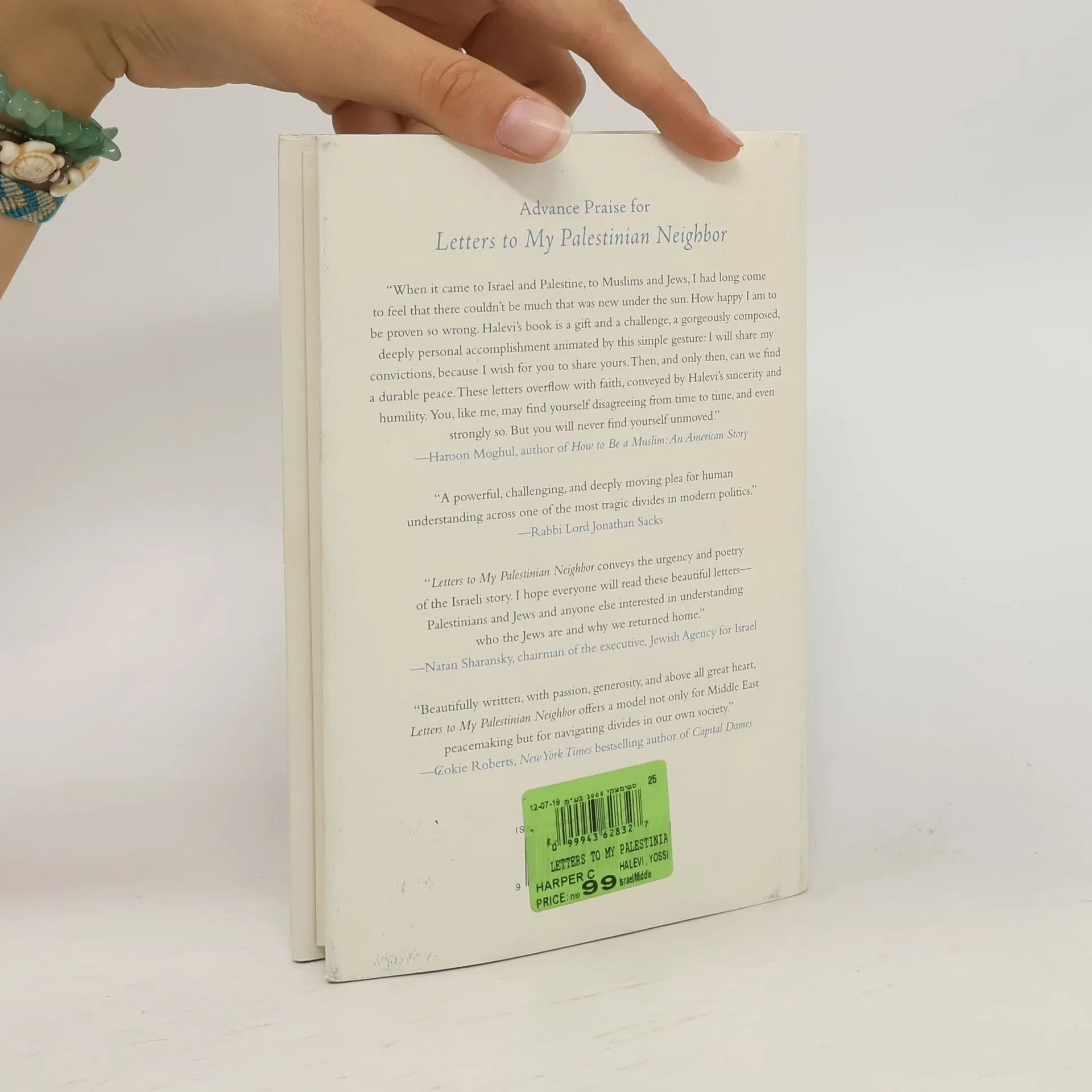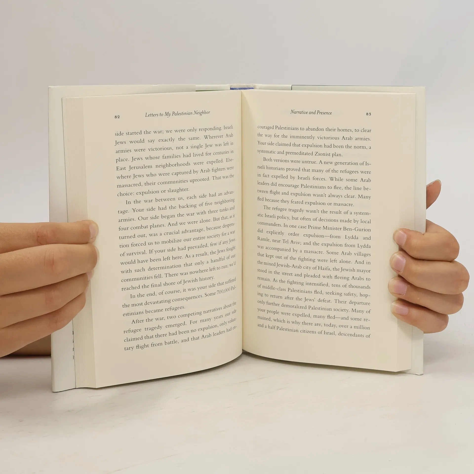 "Letters to My Palestinian Neighbor is one Israeli's powerful attempt to reach beyond the wall that separates Israelis and Palestinians and into the hearts of "the enemy." In a series of letters, Yossi Klein Halevi explains what motivated him to leave his native New York in his twenties and move to Israel to participate in the drama of the renewal of a Jewish homeland, which he is committed to see succeed as a morally responsible, democratic state in the Middle East." -- Amazon.com.