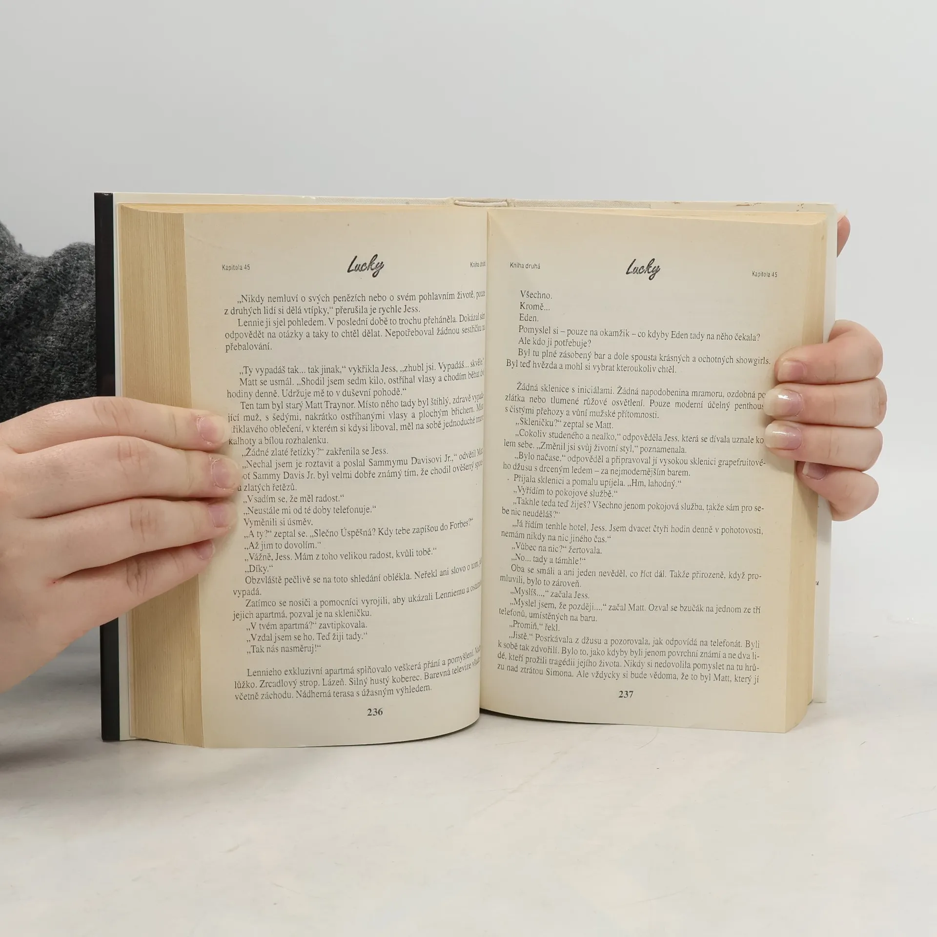 Pokračování světově proslulého bestselleru Šance se jmenuje Lucky - po jedné z hrdinek, dceři Gina Santangela. Lucky, tak podobná svému otci - divoká, bystrá a nezkrotná, chce dosáhnout stejné moci a závratného bohatství jako Gino. Otec s dcerou si po mnoha životních zvratech konečně k sobě našli cestu. Jejich porozumění však ohrožuje žena, která vstoupila do Ginova života hlouběji než lehkým flirtem. A sama Lucky se pochybně vyrovnává s novou situací spojením s mužem stejného stáří a bohatství, jako má její otec. Navíc jméno Santangelů je solí v očích mnoha protivníků, rozhodně vyvolává nenávist v Santinovi Bonnatim, jehož otce Enzia mají Santangelové na svědomí. Nepřátelství jejich klanů je údělem Santangelů. V knize nabité napětím, dramatickými zvraty a neskrývanou erotikou se rozvíjejí osudy dalších postav. Jak se vyrovná se svou nečekaně rostoucí slávou Lennie Golden? Co si počne Carrie s vyděračem a kdo to je? Čtenáři poskytne kniha nejen napětí, ale provede je životem mocných, jejich šatníkem, kuchyní, barem i ložnicí, a to tak důkladně, že získají dokonalý obraz o těchto lidech. A o tom, nakolik jsou příběhy a povahy pravdivé, svědčí skutečnost, že se nejedna slavná osobnost v díle Jackie Collins poznala. Lucky Santangelo - serie 1. díl - Šance 2. díl - Lucky 3. díl - Lady Boss 4. díl - Pomsta Lucky 5. díl - Nebezpečný polibek 6. díl - Nebezpečná žena... celý text
