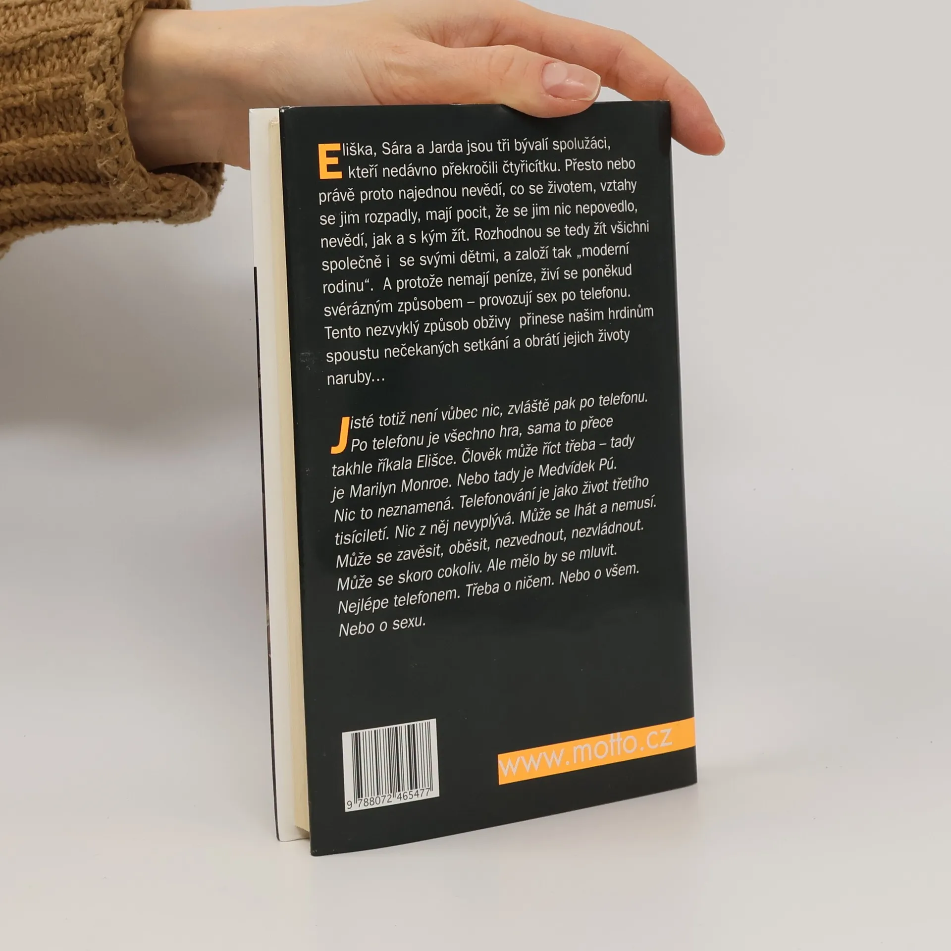 Kniha o jednom geniálním nápadu a lásce jako cvok Eliška, Sára a Jarda se živí poněkud svérázným způsobem - provozují sex po telefonu. Tento způsob obživy jim přinese spoustu nečekaných setkání, a vůbec všem třem obrátí život naruby…