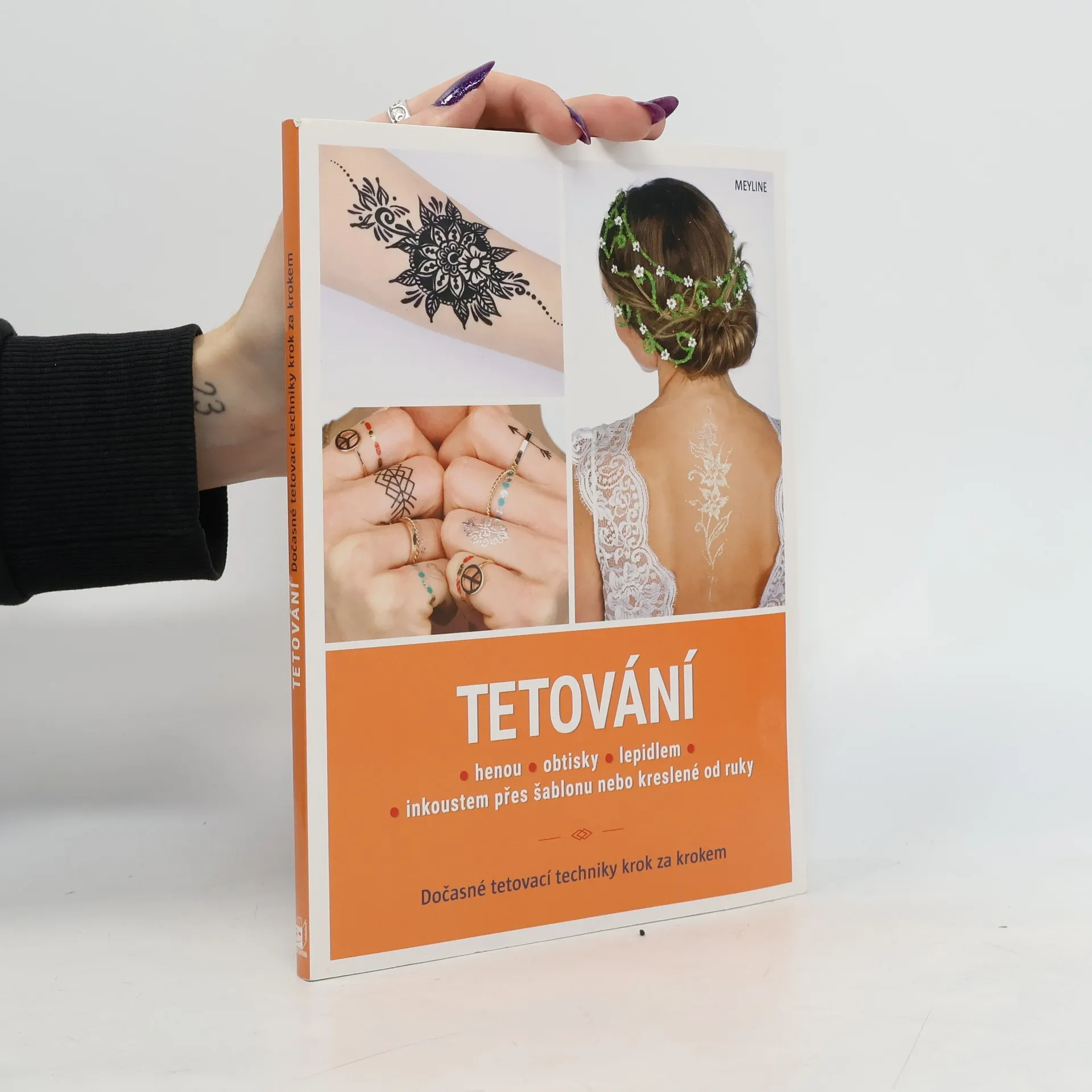 Tetování : hennou, obtisky, lepidlem, inkoustem přes šablonu nebo kreslené od ruky : dočasné tetovací techniky krok za krokem, Meyline, Aurélie Laurent, Zdeňka Fromková