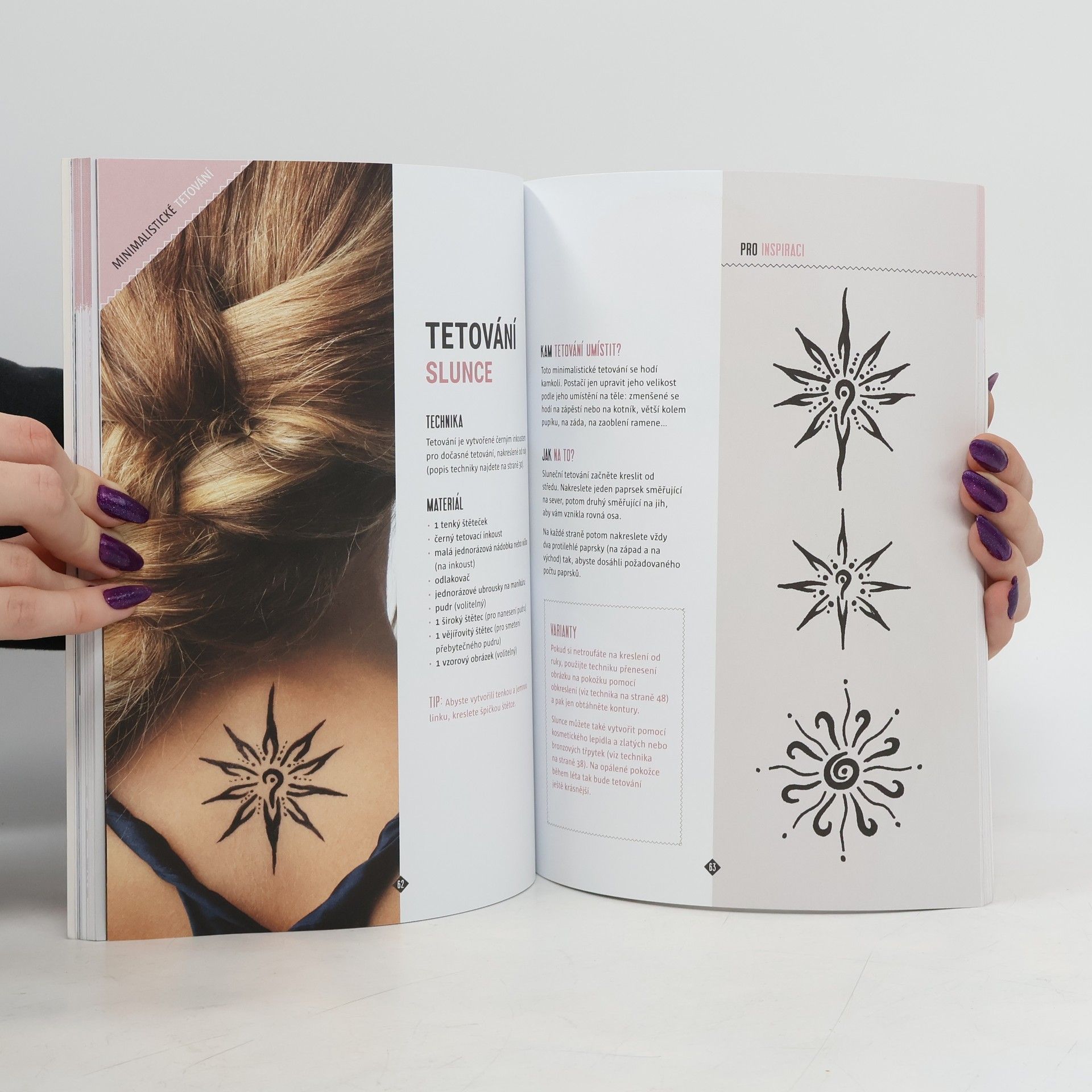 Tetování : hennou, obtisky, lepidlem, inkoustem přes šablonu nebo kreslené od ruky : dočasné tetovací techniky krok za krokem
