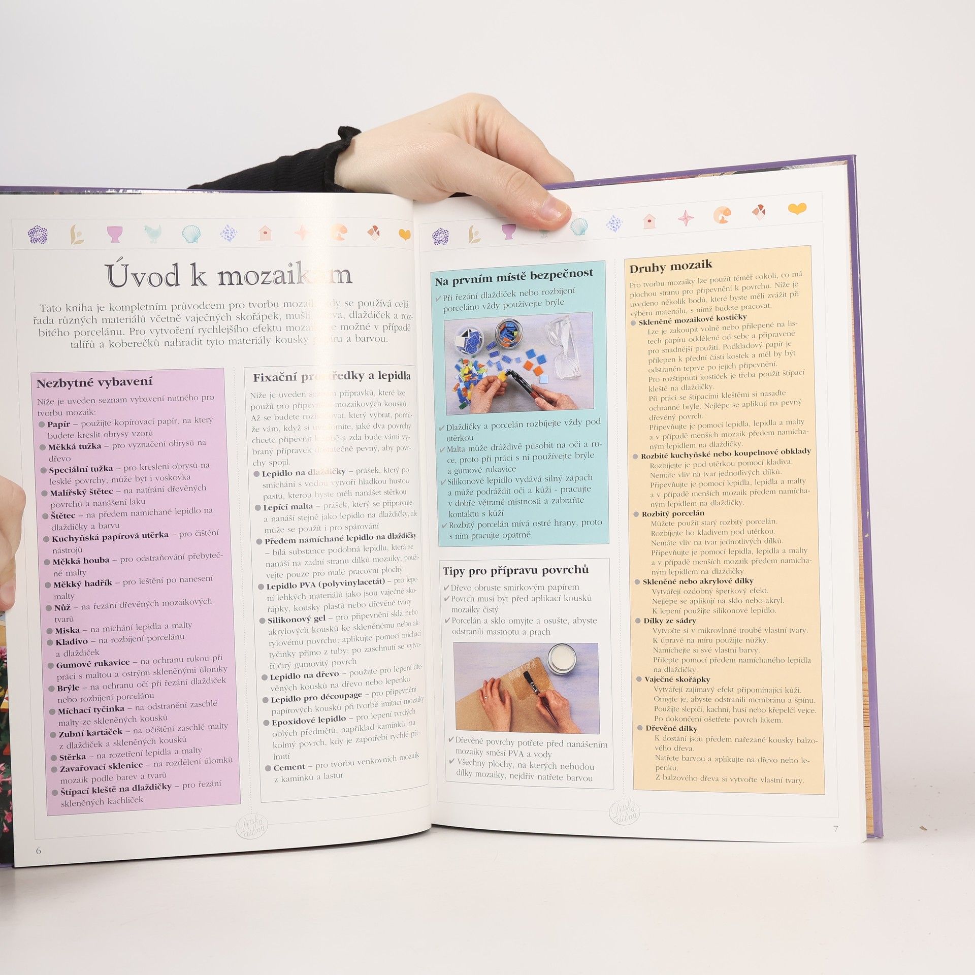 Vaječné skořápky, skleněné střípky, kamínky, mušle a další věci, které mohou na první pohled vypadat nepotřebně, se pod vašima rukama změní v pestrobarevné mozaiky. Bez problému zvládnete totuo technikou udělat pěkné dárky pro celou rodinu nebo pro své kamarády. Stačí šikovné ruce a pár nápadů. Šikovné ruce jistě máte a nápady vás čekají v této knize, která vás od začátku provede tvorbou mozaik tak, aby vám hotové výrobky udělaly co největší radost.