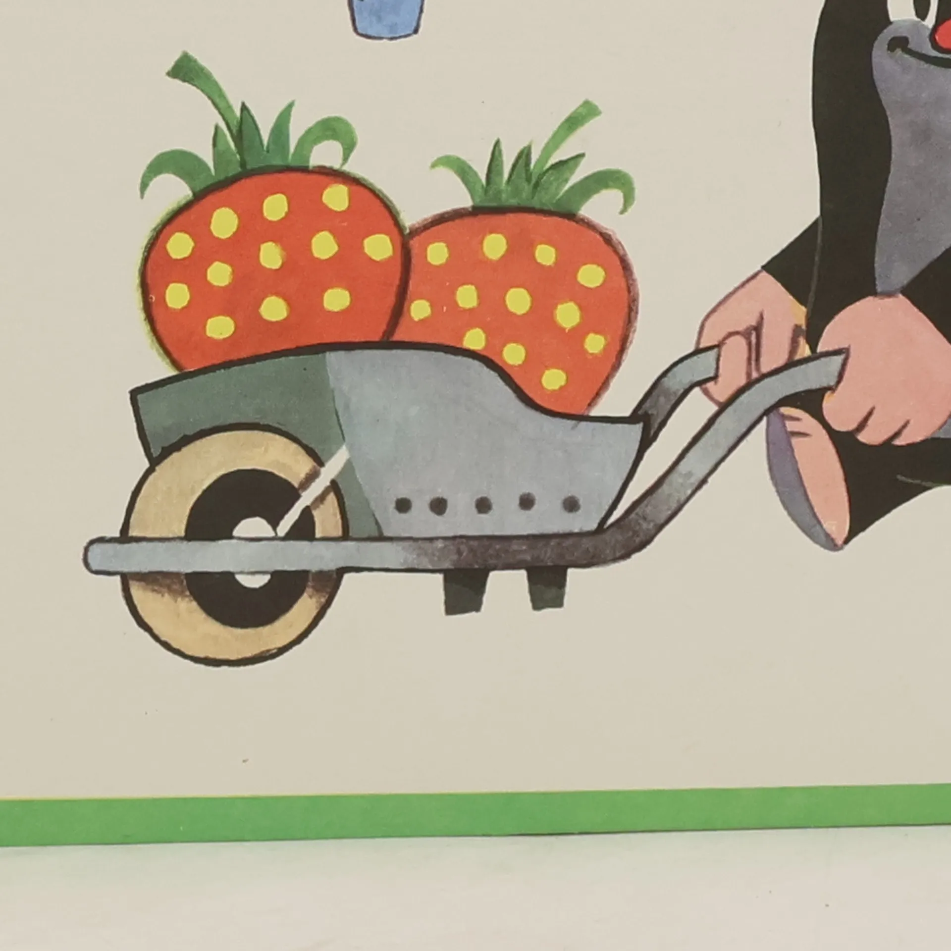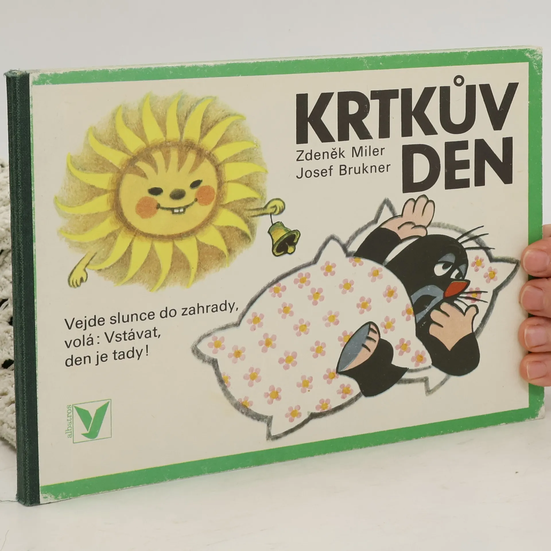 Krtka probudilo sluníčko. Bude pěkný den, a tak ho stráví na zahradě. Posnídá mrkvičku a do práce. Čekají na něj sladké jahůdky. Po dobrém obědě si odpočine, vykoupe se v rybníčku a večer znovu do postýlky. Klasické dvanáctistránkové leporelo pro nejmenší. Ilustrace Zdeňka Milera provázejí půvabné verše Josefa Bruknera.
