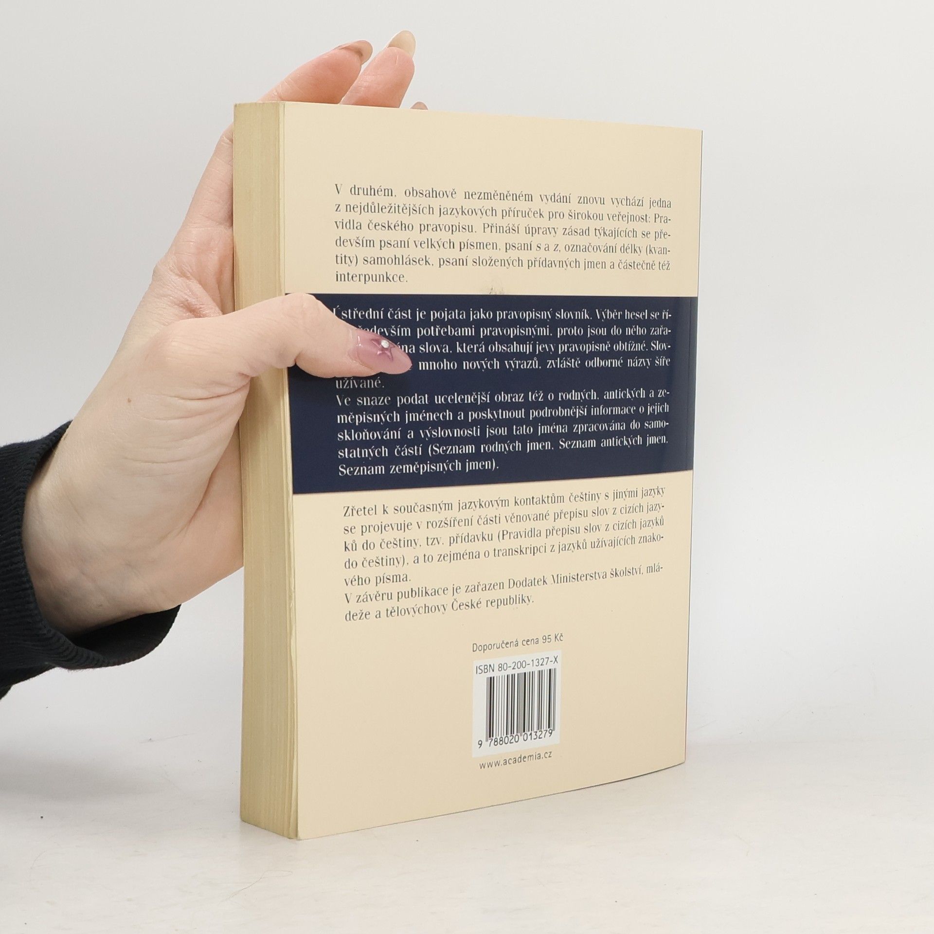 Příručka pravidel českého pravopisu s pravopisným slovníkem a výkladem současné české mluvnice. Určeno pro studenty.