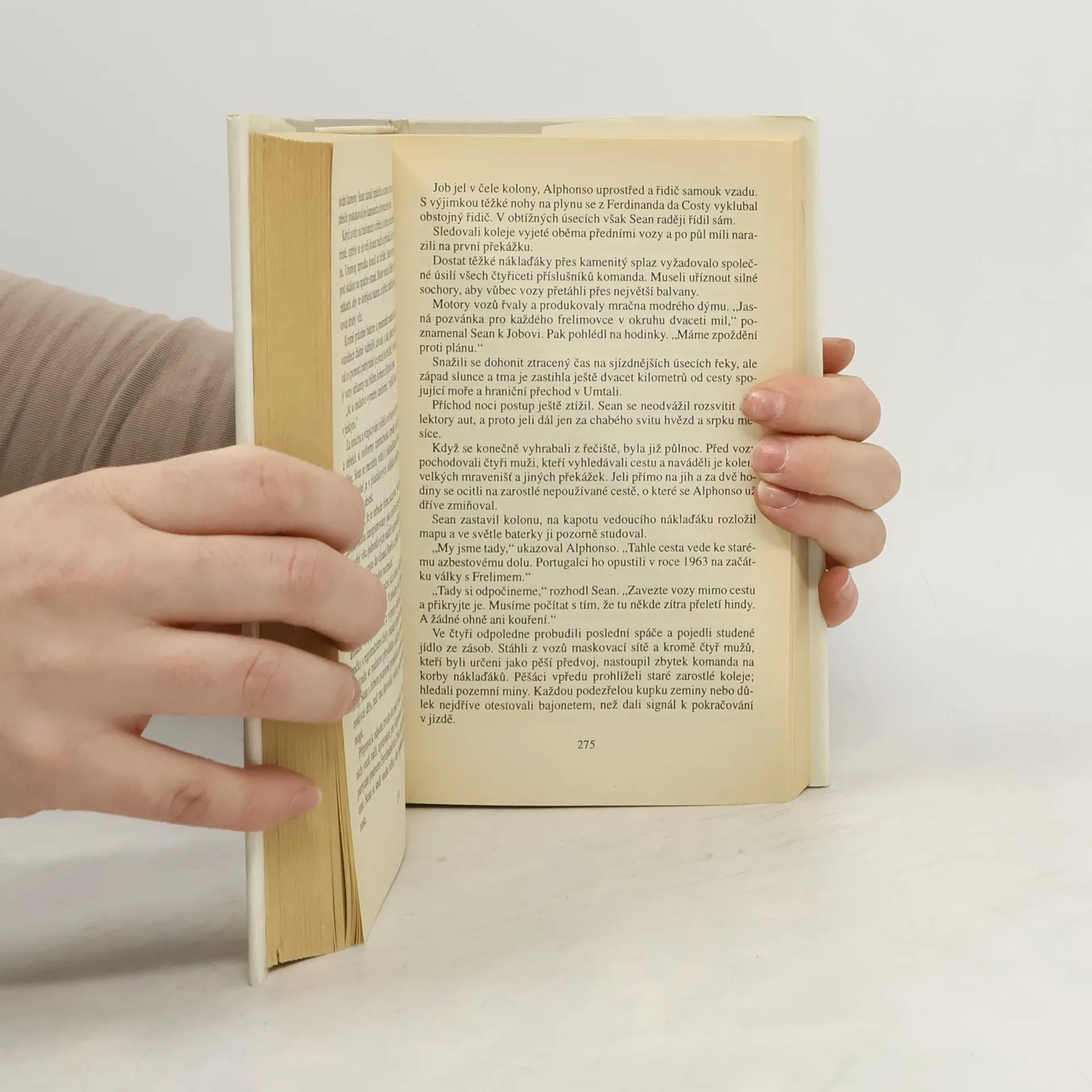 Napínavý dobrodružný román se odehrává v divoké přírodě současné Afriky, kde do osudu hrdinů zasáhne i občanská válka v Mosambiku. Tři hrdinové, profesionální lovec, bohatý zákazník a jeho dcera, podnikají safari v jednom z povolených loveckých území v Zimbabwe. Trojice, která pronásleduje starého sloního samce, se dostane přes hranice do Mosambiku, kde probíhá nepřehledná a krutá občanská válka. Zákazník při lovu zahyne a zbylá dvojice se svými domorodými průvodci upadne do zajetí povstalců, s nimiž musí absolvovat strastiplnou cestu napříč vzbouřenou zemí. Pro oba je to nejen zkouška fyzické zdatnosti, ale i zkouška vzájemného vztahu. 1. vydání