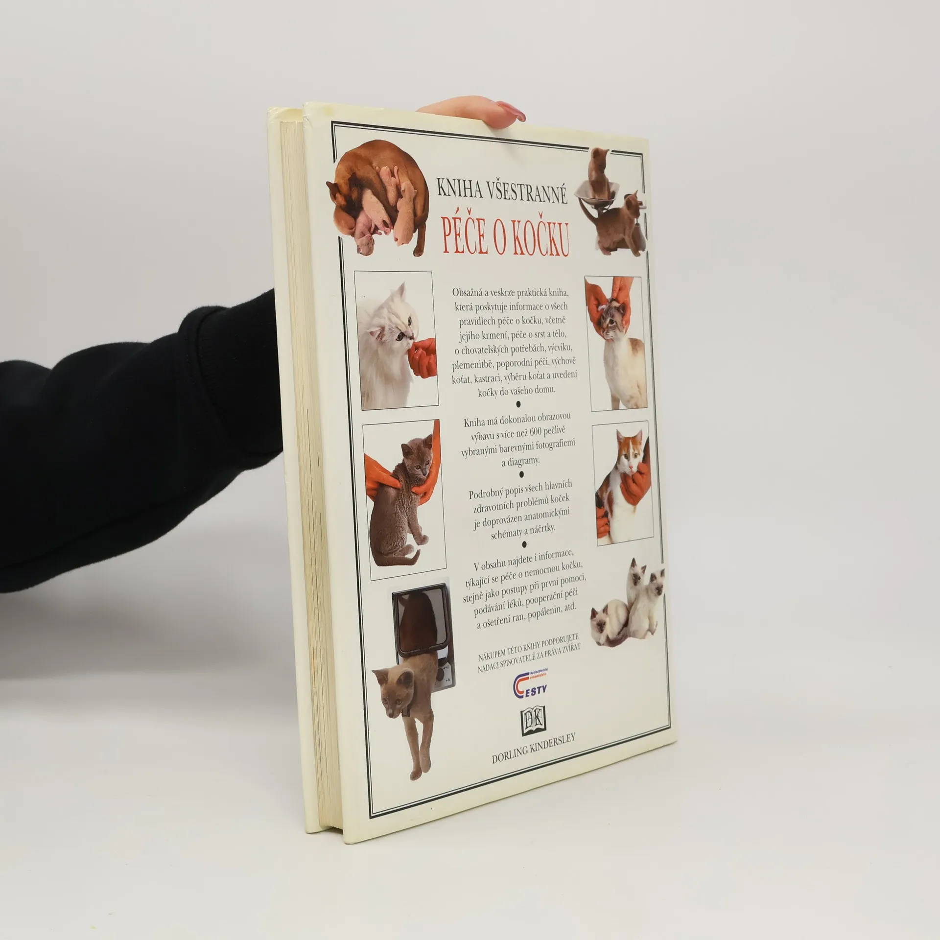 Obsažná a veskrze praktická kniha, která poskytuje informace o všech pravidlech péče o kočku, včetně jejího krmení, péče o srst a tělo, o chovatelských potřebách, výcviku, plemenitbě, poporodní péči, výchově koťat, kastraci, výběru koťat a uvedení kočky do vašeho domu. Kniha má dokonalou obrazovou výbavu s více než 600 pečlivě vybranými barevnými fotografiemi a diagramy. Podrobný popis všech hlavních zdravotních problémů koček je doprovázen anatomickými schématy a náčrtky. V obsahu najdete i informace, týkající se péče o nemocnou kočku, stejně jako postupy při první pomoci, podávání léků, pooperační péči a ošetření ran, popálenin, atd.