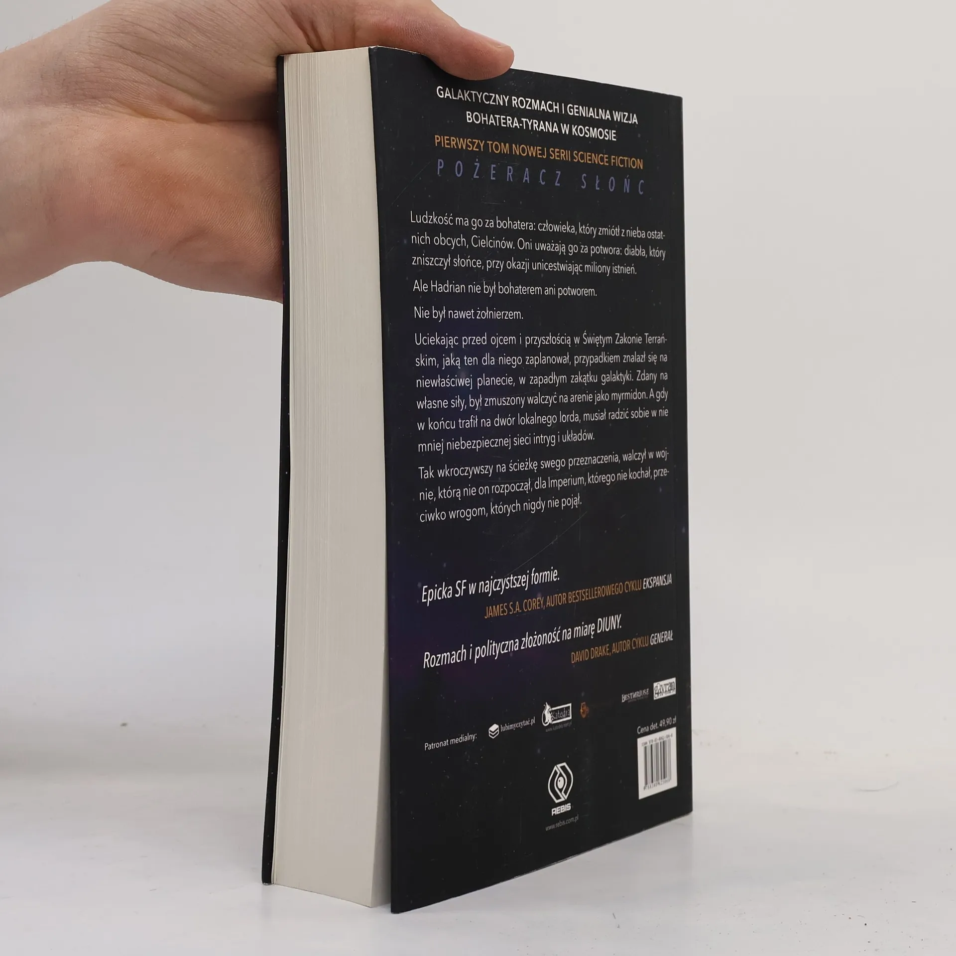 Galaktyczny rozmach połączony z epickim klimatem. Genialna wizja bohatera-tyrana w kosmosie – pierwszy tom nowej serii science fiction. Ludzkość widzi w nim bohatera, który zniszczył ostatnich obcych, Cielcinów, podczas gdy oni uważają go za potwora, który unicestwił miliony istnień. Hadrian nie był ani bohaterem, ani potworem, ani żołnierzem. Uciekając przed ojcem i jego planami, przypadkiem znalazł się na niewłaściwej planecie, gdzie musiał walczyć jako gladiator. Wkrótce trafił na dwór lokalnego lorda, gdzie zmagał się z niebezpiecznymi intrygami. Wkraczając na ścieżkę swojego przeznaczenia, walczył w wojnie, której nie rozpoczął, dla Imperium, którego nie kochał, przeciwko wrogom, których nie rozumiał. Epicka space opera w czystej formie, z polityczną złożonością, która przyciąga fanów Iana M. Banksa i Franka Herberta. Stworzona z galaktycznym rozmachem wizja przyszłości oraz historia bohatera-tyrana ukazuje człowieka i jego naturę. To świetna propozycja dla miłośników twórczości Pierce’a Browna i Patricka Rothfussa. Ruocchio tworzy bogaty w szczegóły świat w odległej przyszłości, oferując epicką opowieść z silnym bohaterem, co zadowoli fanów gatunku.
