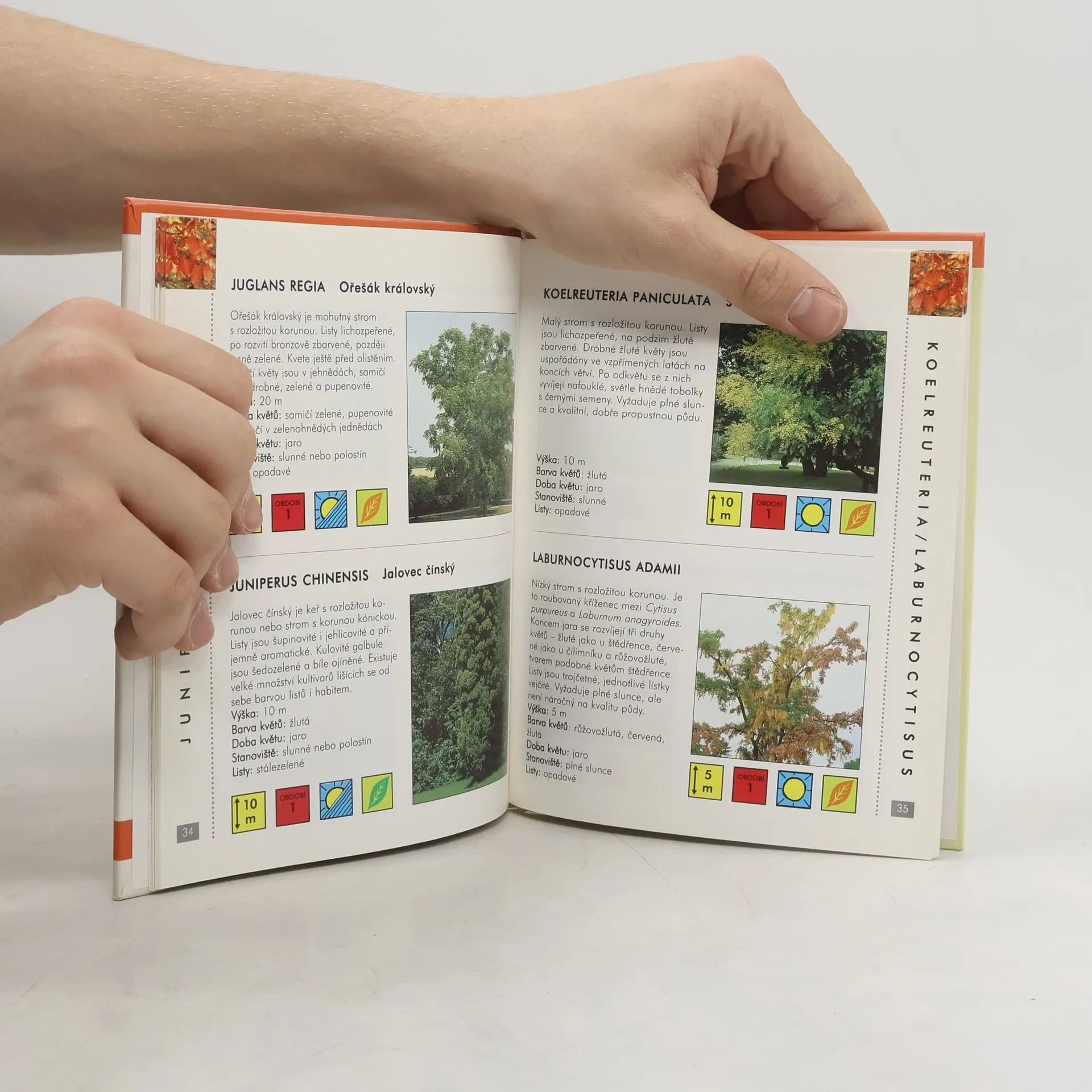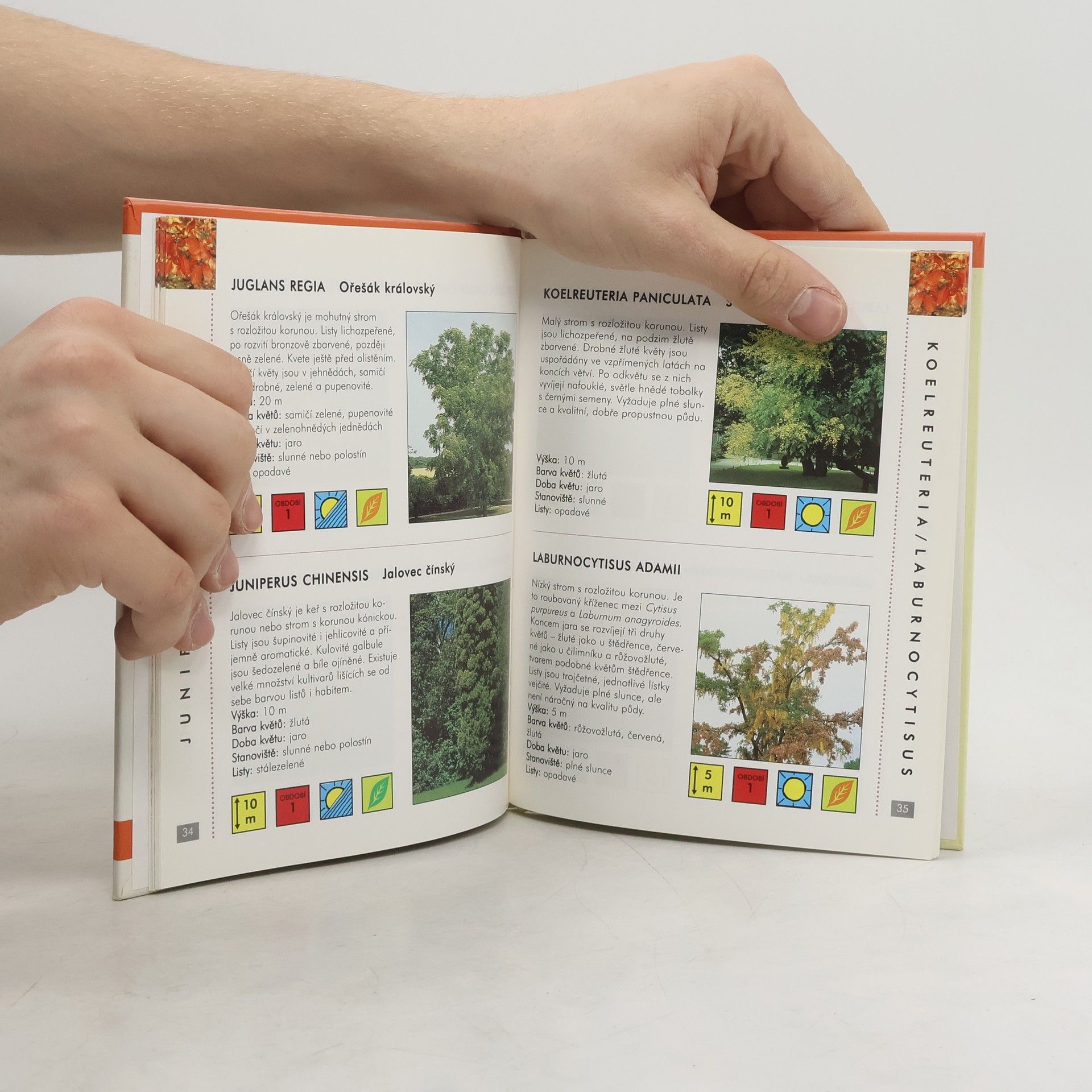Stromy jsou v publikaci seřazeny abecedně, u každého je piktogramem vyznačeno v jakých podmínkách roste: kolik pro svůj růst potřebuje světla, tepla a vláhy. Také jaké výšky strom dosahuje a tím pro jaký typ zahrady se hodí. Příručka obsahuje fotografie jednotlivých stromů s jejich popisem.