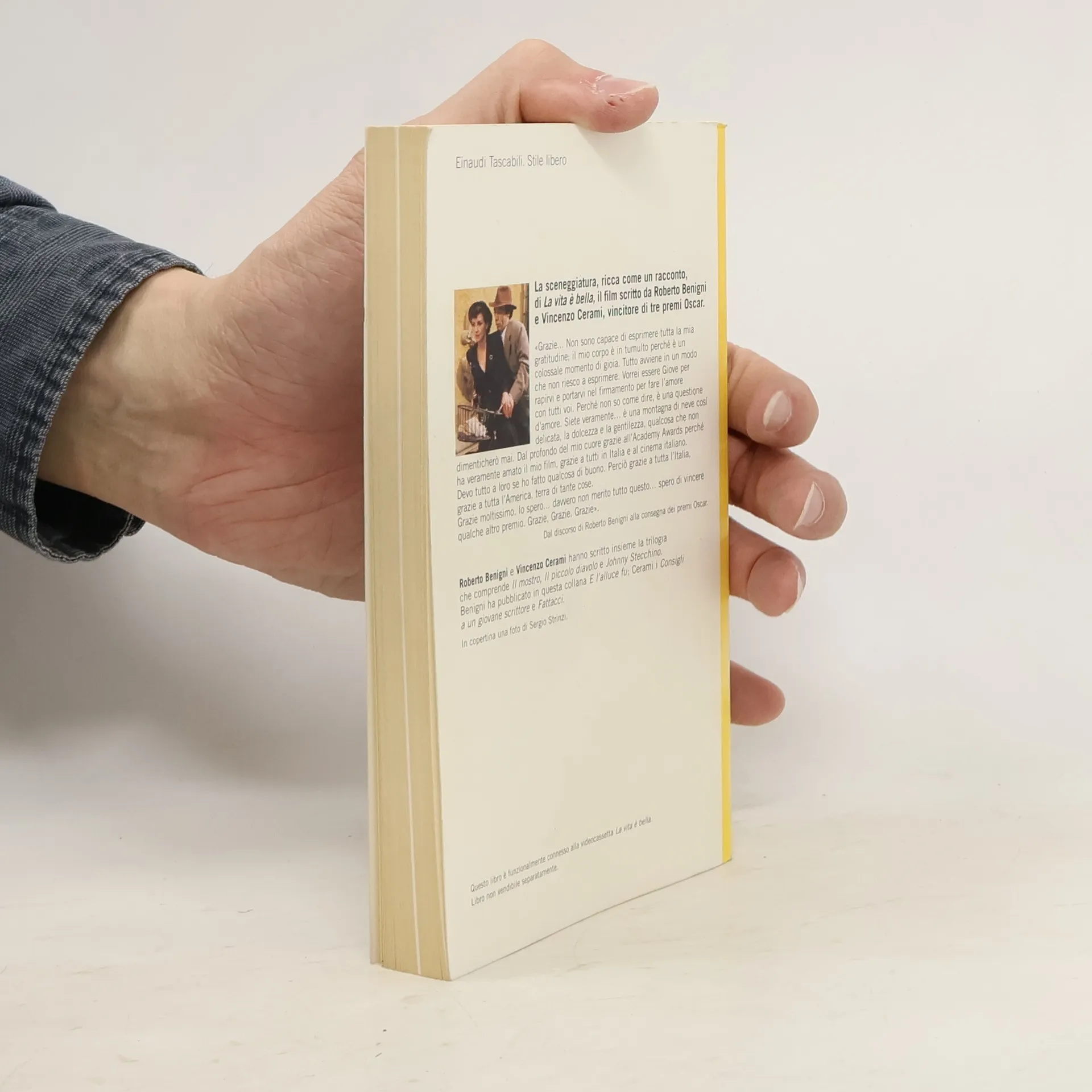 Il libro è la sceneggiatura del film "La vita è bella" di Roberto Benigni e Vincenzo Cerami. Mentre lo si legge si può provare tutta l'emozione del film ed è come rivederlo direttamente sullo schermo. Il libro è impreziosito con una prefazione dello stesso Benigni che racconta, con il suo modo unico, come la storia sia nata e come si è sviluppata nel film vincitore di tre premi Oscar. Ci sono anche degli inserti in bianco e nero che raffigurano scene del film. Un libro assolutamente da leggere che fa rivivere uno dei più bei film italiani di sempre.
