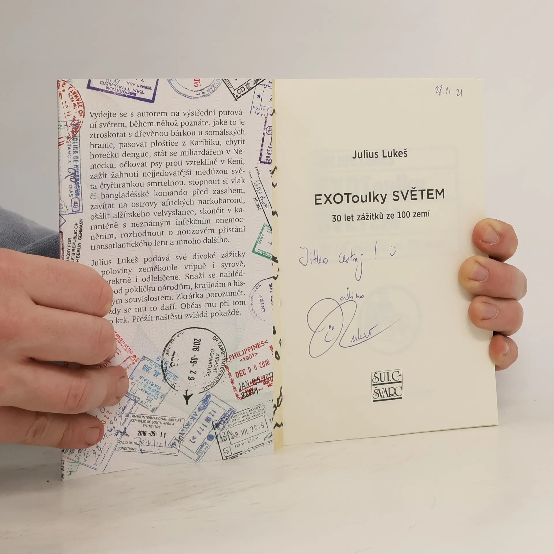 Vydejte se s autorem na výstřední putování světem, během něhož poznáte, jaké to je ztroskotat s dřevěnou bárkou u somálských hranic, pašovat ploštice z Karibiku, chytit horečku dengue, stát se miliardářem v Německu, očkovat psy proti vzteklině v Keni, zažít žahnutí nejjedovatější medúzou světa čtyřhrankou smrtelnou, stopnout si vlak či bangladéšské komando před zásahem, zavítat na ostrovy afrických narkobaronů, ošálit alžírského velvyslance, skončit v karanténě s neznámým infekčním onemocněním, rozhodnout o nouzovém přistání transatlantického letu a mnoho dalšího. Julius Lukeš podává své divoké zážitky z poloviny zeměkoule vtipně i syrově, nekorektně i odlehčeně. Snaží se nahlédnout pod pokličku národům, krajinám a historických souvislostem. Zkrátka porozumět. Ne vždy se mu to daří. Občas mu při tom jde i o krk. Přežít naštěstí zvládá pokaždé.