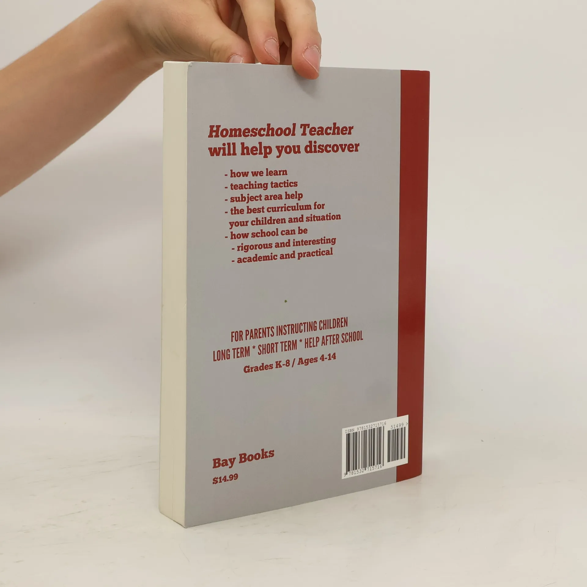 Homeschool Teacher is a guide for families new to homeschooling, old hands looking for ideas, and parents wanting to help their children after school. Based on twelve years of homeschooling experience and academic research, Homeschool Teacher covers how we learn, teaching tactics, specific recommendations for subject areas, how to choose the best curriculum for your family and situation, and above all, how to make school rigorous and interesting, academic and practical. Homeschool Teacher demonstrates how to meld the best of traditional academics and child-led learning to develop an individual program that will maximize your child's potential.
