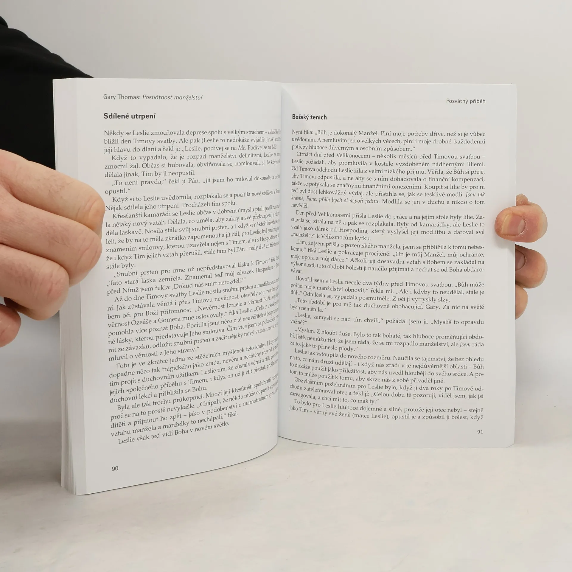 Vaše manželství je víc než jen posvátná smlouva mezi dvěma partnery. Je to duchovní cesta, na níž můžete lépe poznávat Boha a učit se mu víc důvěřovat a hlouběji ho milovat. Kniha není návodem na to, jak budovat lepší manželství; ukazuje cestu, jak vám manželství může pomoci prohloubit vztah s Bohem. Od praktikování odpuštění přes extázi manželské intimity k posvátnému příběhu, který svým společným životem píšete – všechno v manželství skrývá potenciál k objevování Kristovy podoby a k jejímu zjevování světu. Ať už je vaše manželství radostné, nebo náročné, může být v každém případě vstupní branou k životu v důvěrnějším vztahu s Bohem. Tato publikace dost možná výrazně změní váš manželský život.