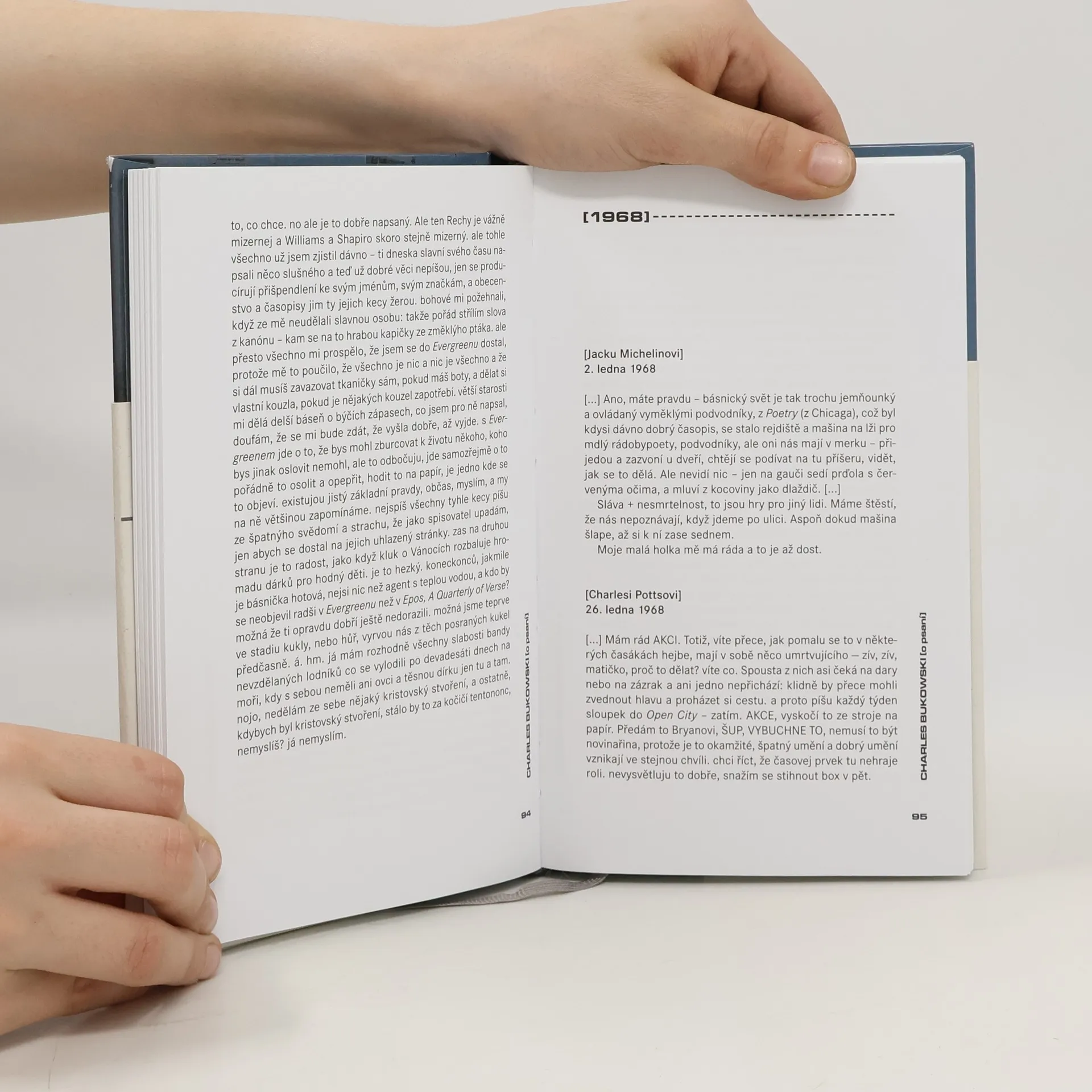Výbor z Bukowského korespondence ukazuje oblíbeného autora z jiné stránky: dopisy přátelům, redaktorům i kolegům, chronologicky řazené, se dotýkají především tématu psaní. Zachycují jednak pomalu se rozvíjející Bukowského tvůrčí kariéru „zevnitř“, očima autora, který líčí, jak začínal poezií v malých časopisech, jak na dlouhá léta psaní úplně přerušil, protože propil psací stroj; jak na jeho možnosti psát působila jeho zaměstnání i lidé kolem něj.