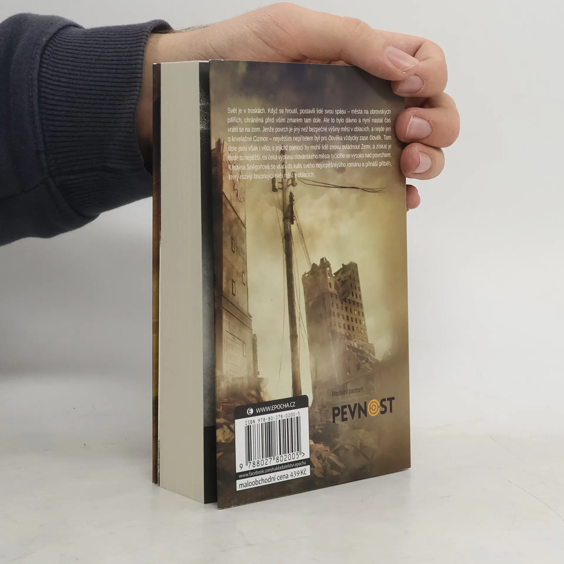 Svět je v troskách. Když se hroutil, postavili lidé svou spásu – města na obrovských pilířích, chráněná před vším zmarem tam dole. Ale to bylo dávno a nyní nastal čas vrátit se na zem. Jenže povrch je jiný než bezpečné výšiny měst v oblacích, a nejde jen o krvelačné Cizince – největším nepřítelem byl pro člověka vždyckyzase člověk. Tam dole jsou však i věci, s jejichž pomocí by mohli lidé znovu ovládnout Zemi, a získat je bude to nejtěžší, co čeká výpravu slovanského města tyčícího se vysoko nad povrchem. Kristýna Sněgoňová se vrací do kulis svého nejúspěšnějšího románu a přináší příběh, který rozvíjí fascinující svět měst v oblacích.