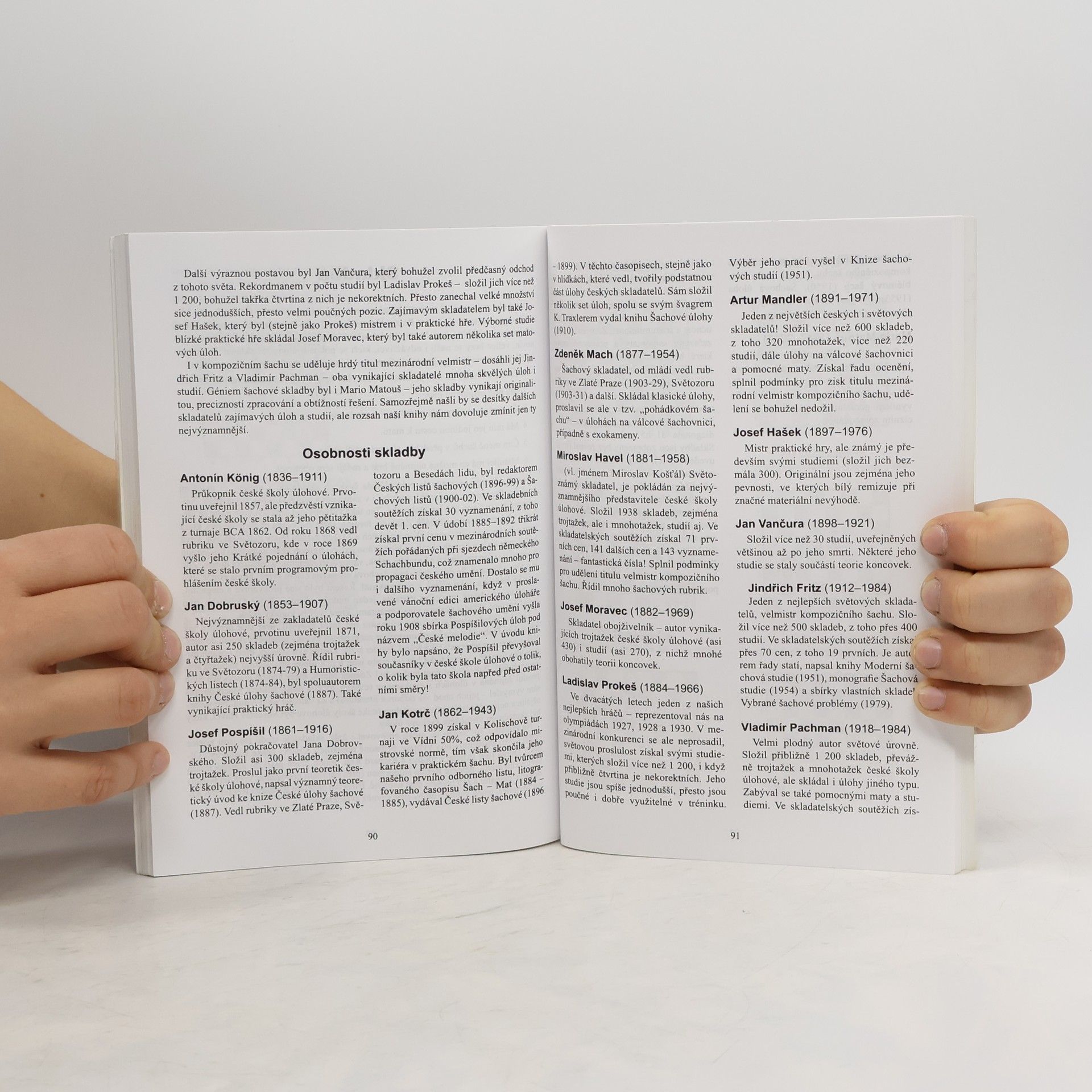Kniha obsahuje 49 medailonků nejlepších českých a slovenských šachistů. Duras, Réti, Flohr, Pachman, Filip, Kaválek, Hort, Movsesjan, Navara, Menčíková, Eretová, Richtrová, Traxler, Husák, Franzen, Dobruský, Mach, Havel, Mandler, Matouš a další. Celkem 65 partií, 102 úloh a studií i s řešením, 30 fotografií.