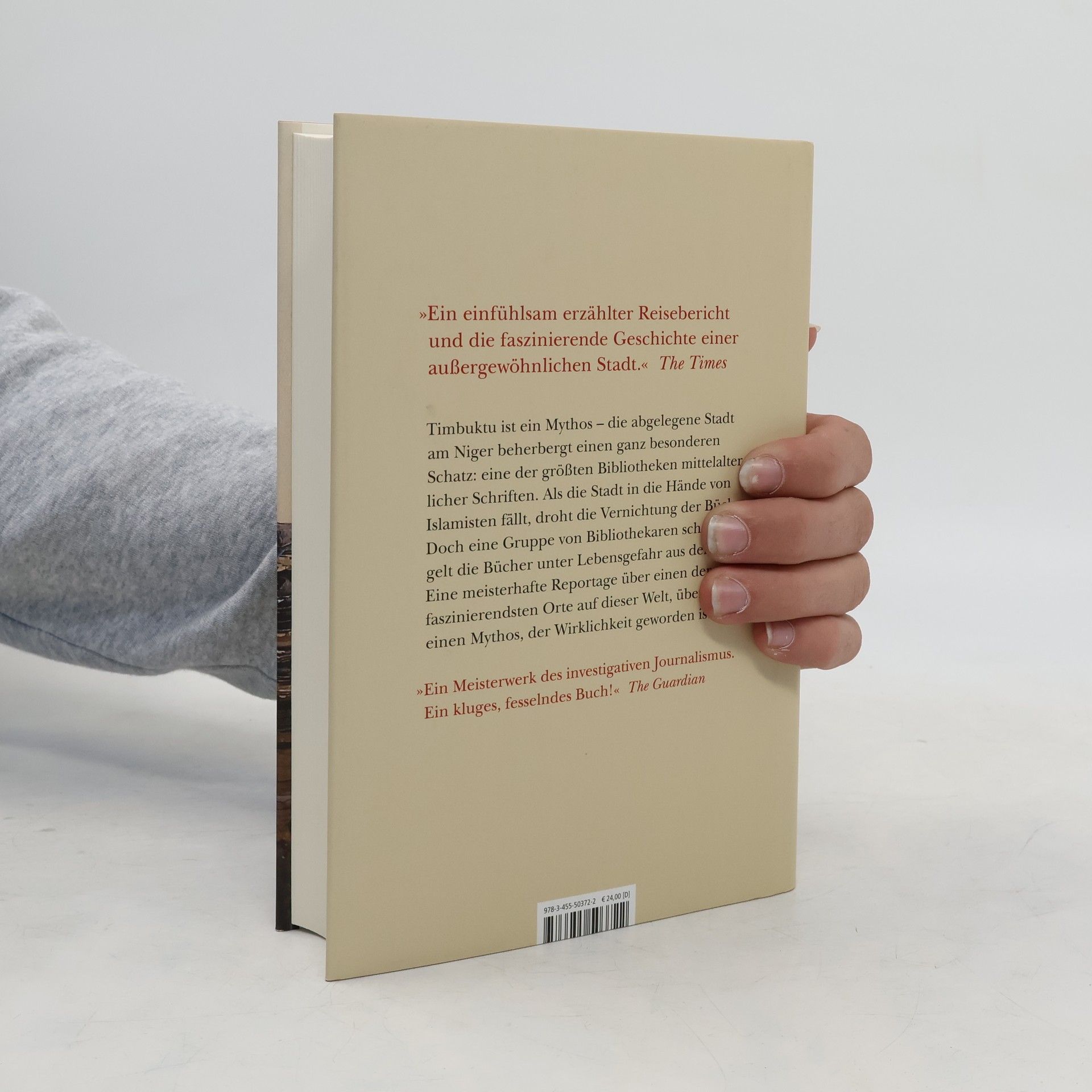 »Ein Meisterwerk des investigativen Journalismus. Ein kluges, fesselndes Buch!« The Guardian Timbuktu ist ein Mythos – einst so reich, dass angeblich sogar die Sklaven Goldschmuck trugen, verfügt die abgelegene Stadt am Niger über einen ganz besonderen Schatz: eine der größten Bibliotheken mittelalterlicher Schriften. Als im Jahr 2012 die Stadt in die Hände von Islamisten fällt, droht die Vernichtung der Bücher. Doch eine Gruppe von Bibliothekaren und Archivaren schmuggelt die Bücher unter Lebensgefahr aus der Stadt. Eine große, meisterhafte Reportage über Menschen, die sich mutig der Vernichtung eines Wissensschatzes und Erbes der Menschheit entgegenstellen – und eine Zeitreise zu einer sagenumwobenen Stadt.