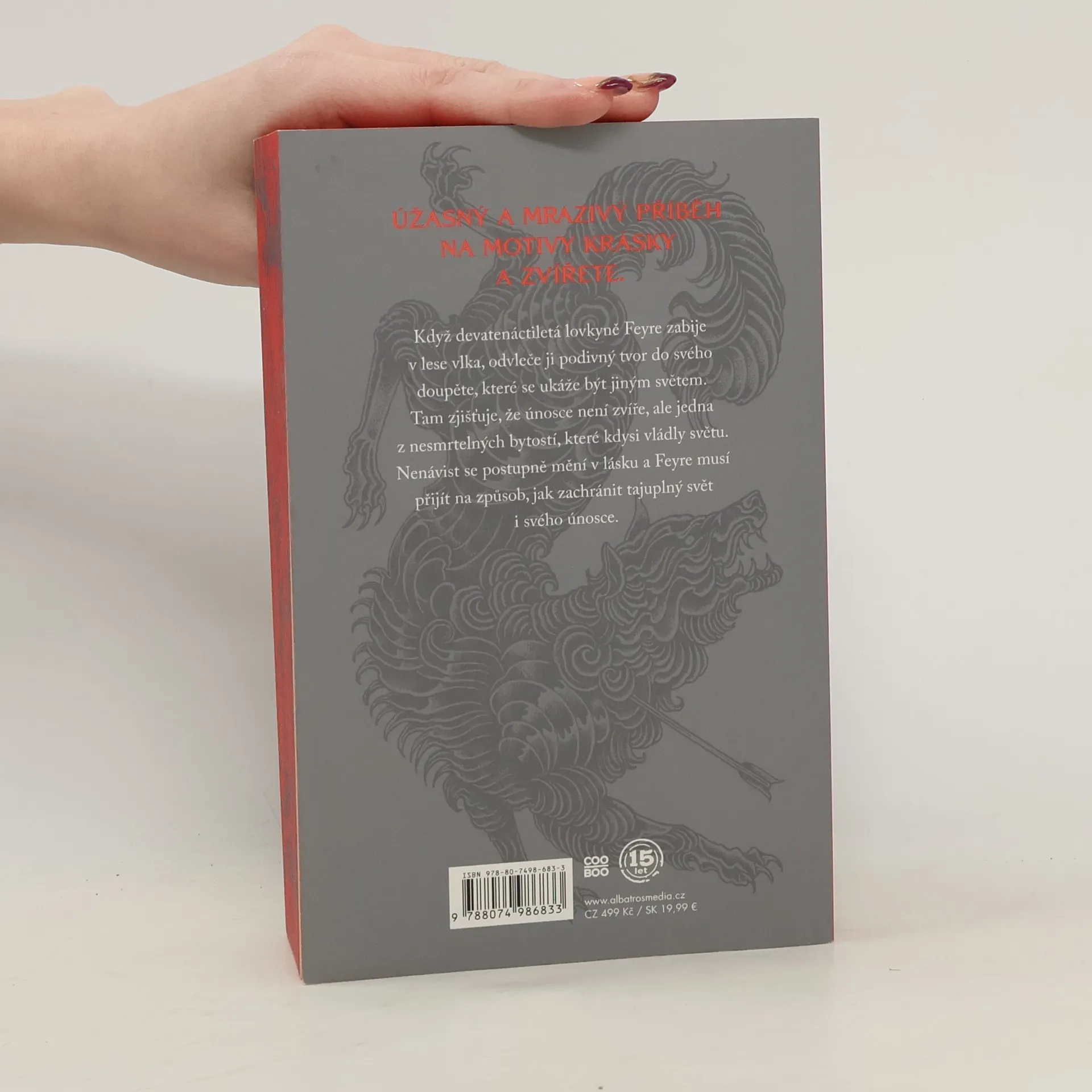 První díl strhující fantasy série pro mládež na motivy krásky a zvířete od autorky úspěšné řady Skleněný trůn. Když devatenáctiletá lovkyně Feyre zabije v lese vlka, zaútočí na ni podivný tvor. Odvleče ji do svého doupěte, které se ukáže být jiným světem. Tam zjišťuje, že tajemným únoscem je jedna z nesmrtelných bytostí, které kdysi vládly světu. Nenávist se postupně mění v lásku. Feyre čeká těžký úkol - musí přijít na způsob, jak zachránit tajuplný svět i svého únosce. Nakladatelská anotace.