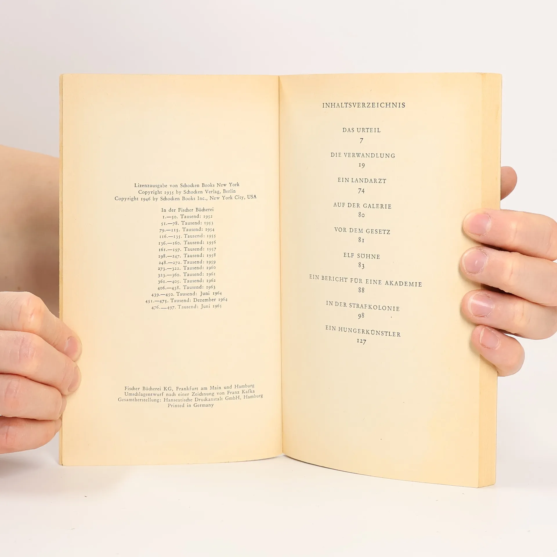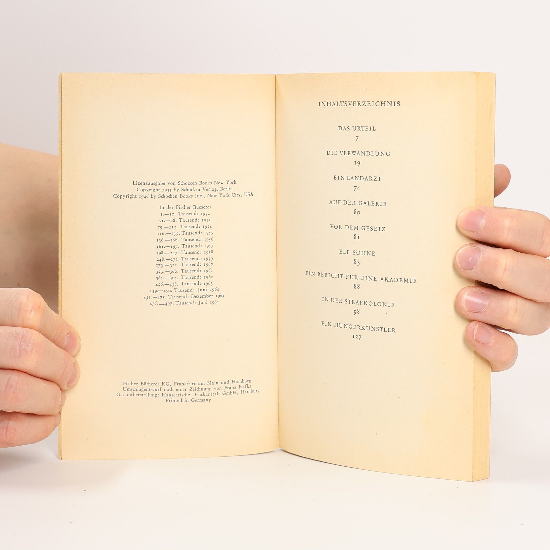 Der Band enthält Kafkas wichtigste kürzere Prosatexte aus der Zeit bis 1914: Gespräch mit dem Beter, Gespräch mit dem Betrunkenen, Großer Lärm, die Sammlung Betrachtung sowie die großen Erzählungen Das Urteil und In der Strafkolonie.