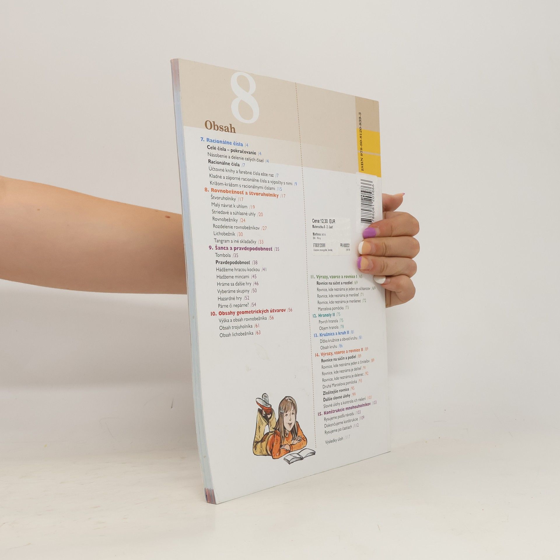 Nová učebnica matematiky od autorov učebníc pre 5. 6. a 7. ročník pokračuje v osvedčenom spôsobe vysvetľovania učiva, ktorý aktívne zapája žiakov do vyučovacieho procesu pri hľadaní rôznych riešení. Didaktické spracovanie učiva, štruktúra textu a motivačné prvky sú podobné ako v učebniciach pre predchádzajúce ročníky. Učivo je spracované podľa ŠVP (Príloha ISCED 2 – 2. upravená verzia pre 5. až 8. ročník ZŠ) z hľadiska charakteristiky a cieľov predmetu. Obsah učebnice zodpovedá obsahu predpísanému učebnými osnovami a vytvára predpoklady na splnenie výstupných požiadaviek sformulovaných v odporúčanom vzdelávacom štandarde. Učebnica je schválená a hradená Ministerstvom školstva, vedy, výskumu a športu SR.