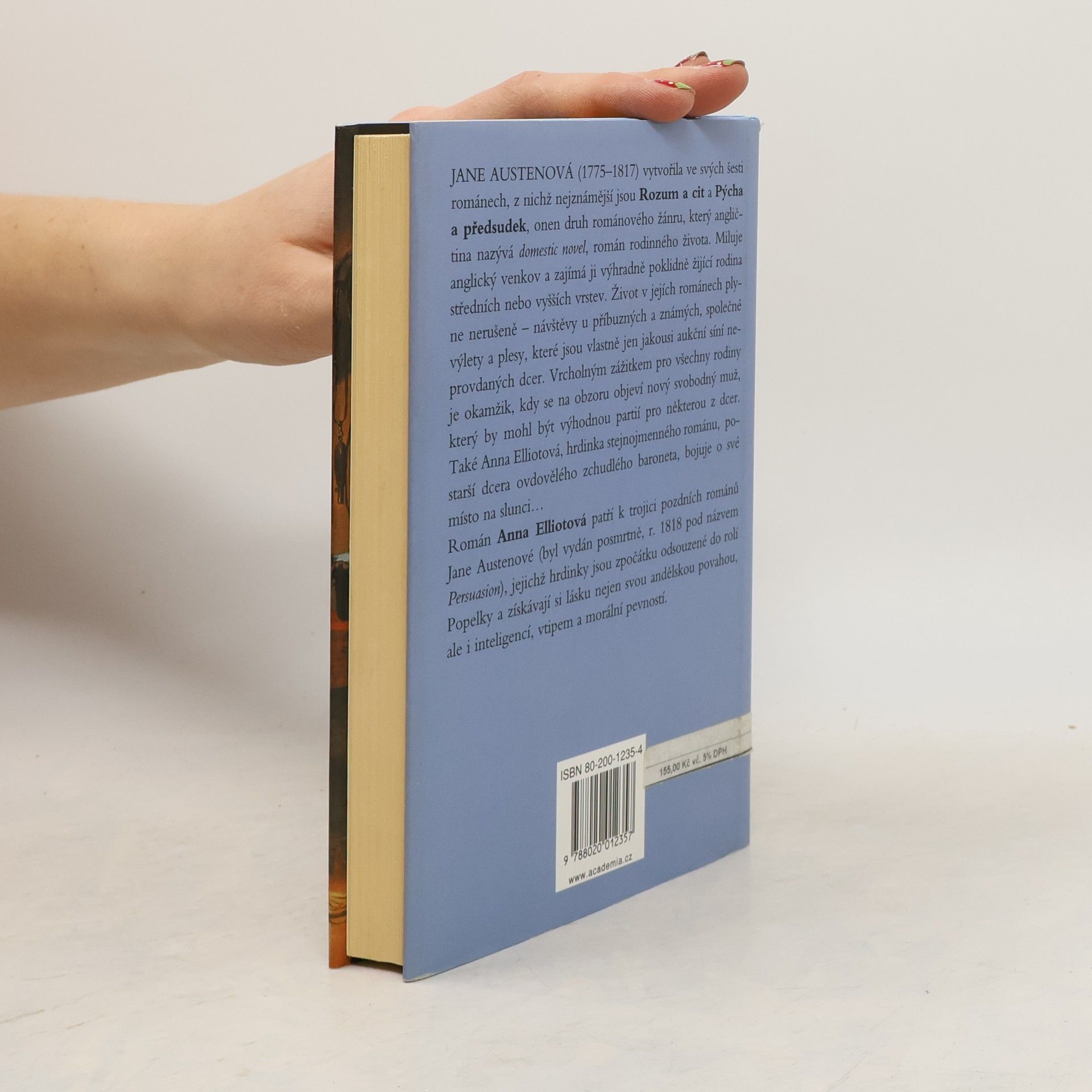 Román Anna Elliotová patří k trojici pozdních románů Jane Austenové (byl vydán posmrtně, r. 1818 pod názvem Persuasion), jejichž hrdinky jsou zpočátku odsouzené do rolí Popelky a získávají si lásku nejen svou andělskou povahou, ale i inteligencí, vtipem a morální pevností. Přeložila Eva Ruxová.