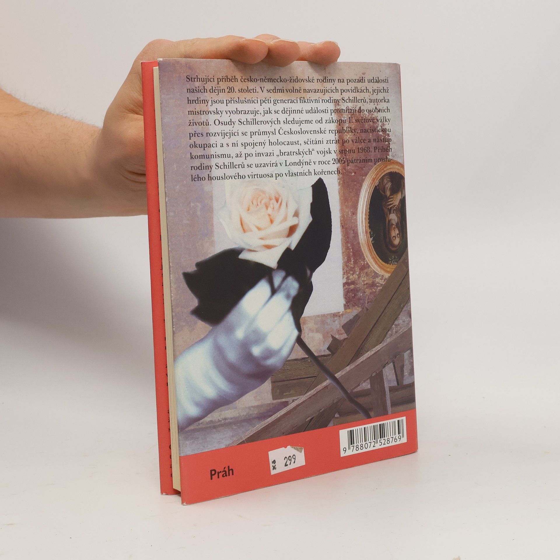 Strhující příběh česko - německo - židovské rodiny na pozadí událostí našich dějin 20. století. Citlivé zachycení 20. století v podání Aleny Ježkové se úspěšně může řadit do současného trendu ženských autorek Mornštajnové a Lednické, které pečlivě a bez přehnaného sentimentu prozkoumávají českou identitu a minulost. V sedmi volně navazujících povídkách, jejichž protagonisty jsou příslušníci pěti generací fiktivní rodiny Schillerů, autorka mistrovsky vyobrazuje, jak se dějinné události promítají do osobních životů. Tuto linii sledujeme od zákopů 1. světové války přes rozvíjející se průmyslu Československé republiky, nacistickou okupaci a s ní spojený Holocaust, sčítání ztrát po válce a nástup komunismu, až po invazi „bratrských“ vojsk v srpnu 1968. Příběh rodiny Schillerů se uzavírá v Londýně v roce 2005 pátráním proslulého houslového virtuosa po vlastních kořenech.