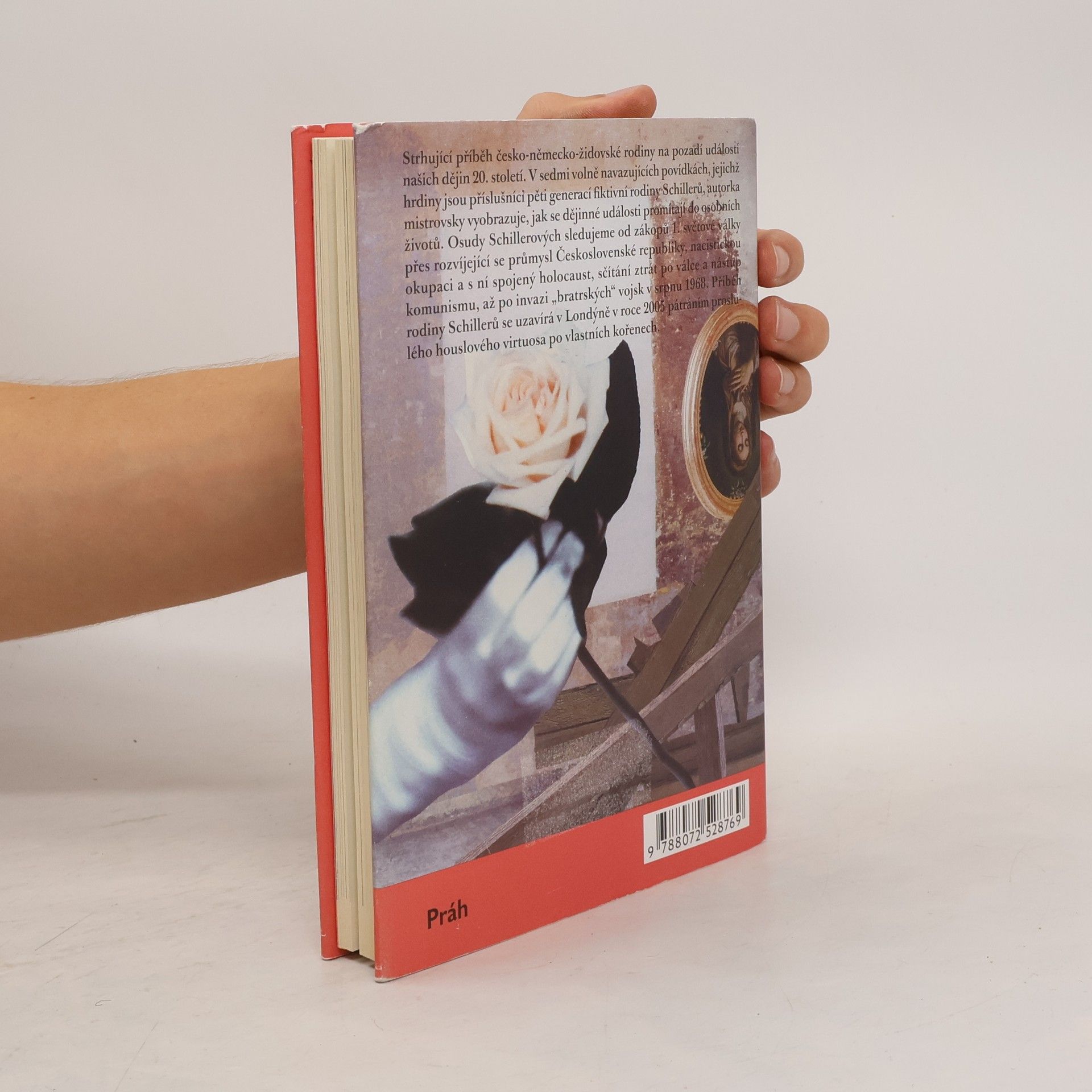 Strhující příběh česko - německo - židovské rodiny na pozadí událostí našich dějin 20. století. Citlivé zachycení 20. století v podání Aleny Ježkové se úspěšně může řadit do současného trendu ženských autorek Mornštajnové a Lednické, které pečlivě a bez přehnaného sentimentu prozkoumávají českou identitu a minulost. V sedmi volně navazujících povídkách, jejichž protagonisty jsou příslušníci pěti generací fiktivní rodiny Schillerů, autorka mistrovsky vyobrazuje, jak se dějinné události promítají do osobních životů. Tuto linii sledujeme od zákopů 1. světové války přes rozvíjející se průmyslu Československé republiky, nacistickou okupaci a s ní spojený Holocaust, sčítání ztrát po válce a nástup komunismu, až po invazi „bratrských“ vojsk v srpnu 1968. Příběh rodiny Schillerů se uzavírá v Londýně v roce 2005 pátráním proslulého houslového virtuosa po vlastních kořenech.