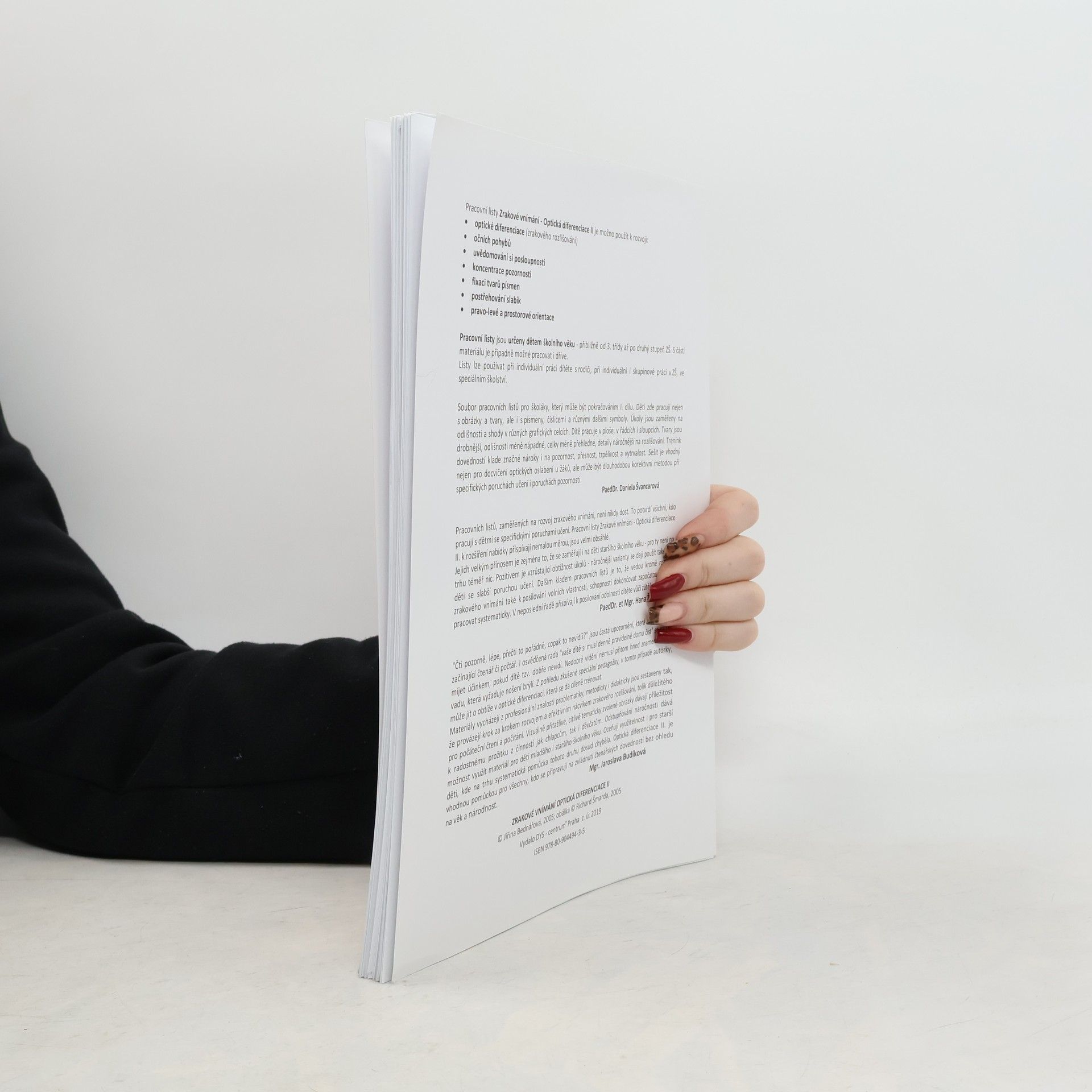 Dobré zrakové vnímání je jedním z předpokladů úspěšného zvládnutí čtení a psaní písmen, slabik, slov i číslic a čísel. Určeno od 3. třídy až po druhý stupeň. Pracovní listy je možno použít k rozvoji: - optické diferenciace (zrakového rozlišování) - očních pohybů - uvědomování si posloupnosti - koncentrace pozornosti - fixaci tvarů písmen - postřehování slabik - pravo - levé a prostorové orientace
