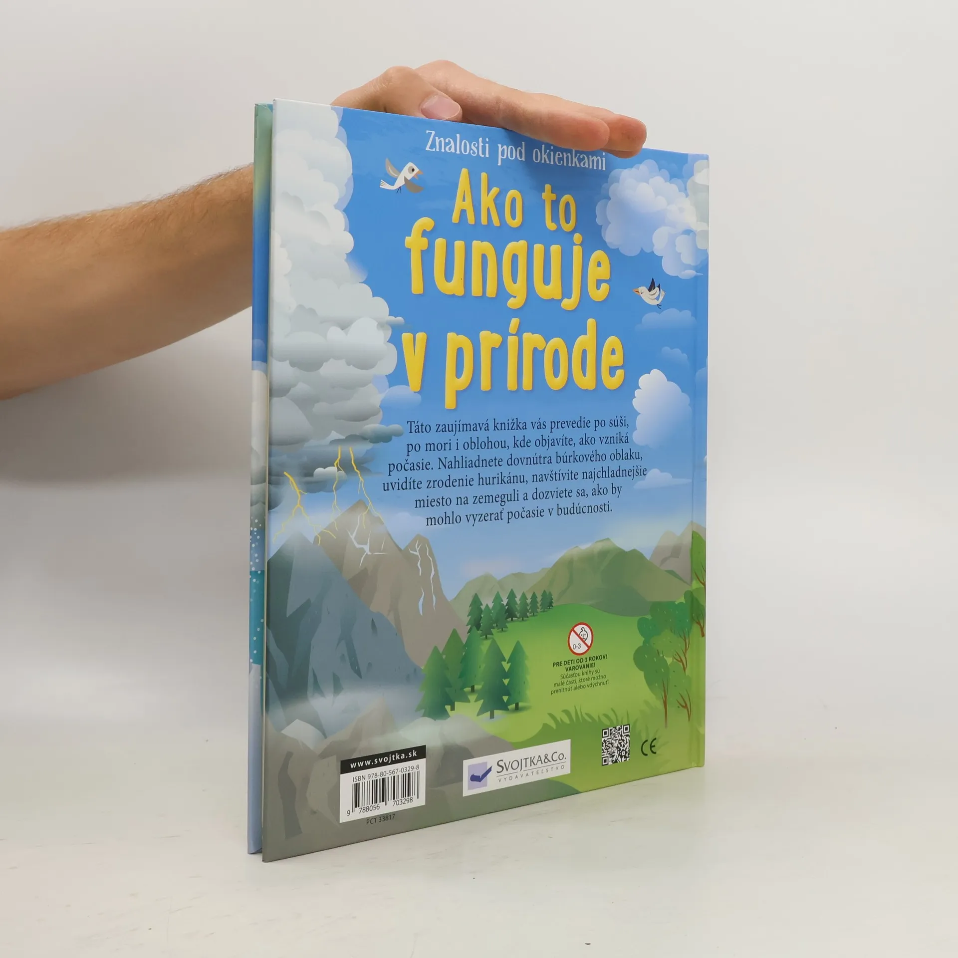 Ako vzniká počasie? Aké môže byť? Aké sú klimatické pásma na Zemi? Aký je kolobeh vody? Zaujíma vás počasie a chcete zistiť, ako to funguje v prírode? Chcete sa dozvedieť niečo viac o pôsobení Slnka, prúdení vzduchu, divokých vetroch alebo najmrazivejších oblastiach? Táto zaujímavá knižka s viac než 100 okienkami vás prevedie po súši, po mori, oblohou, objavíte s ňou ako vzniká počasie, nazriete do vnútra búrkového oblaku, uvidíte zrodenie hurikánu, navštívite nejedno miesto na zemeguli a dozviete sa aj to, ako by mohlo vyzerať počasie v budúcnosti. Otvorte teda túto knižku, pozrite sa pod okienka a naučte sa niečo nové!