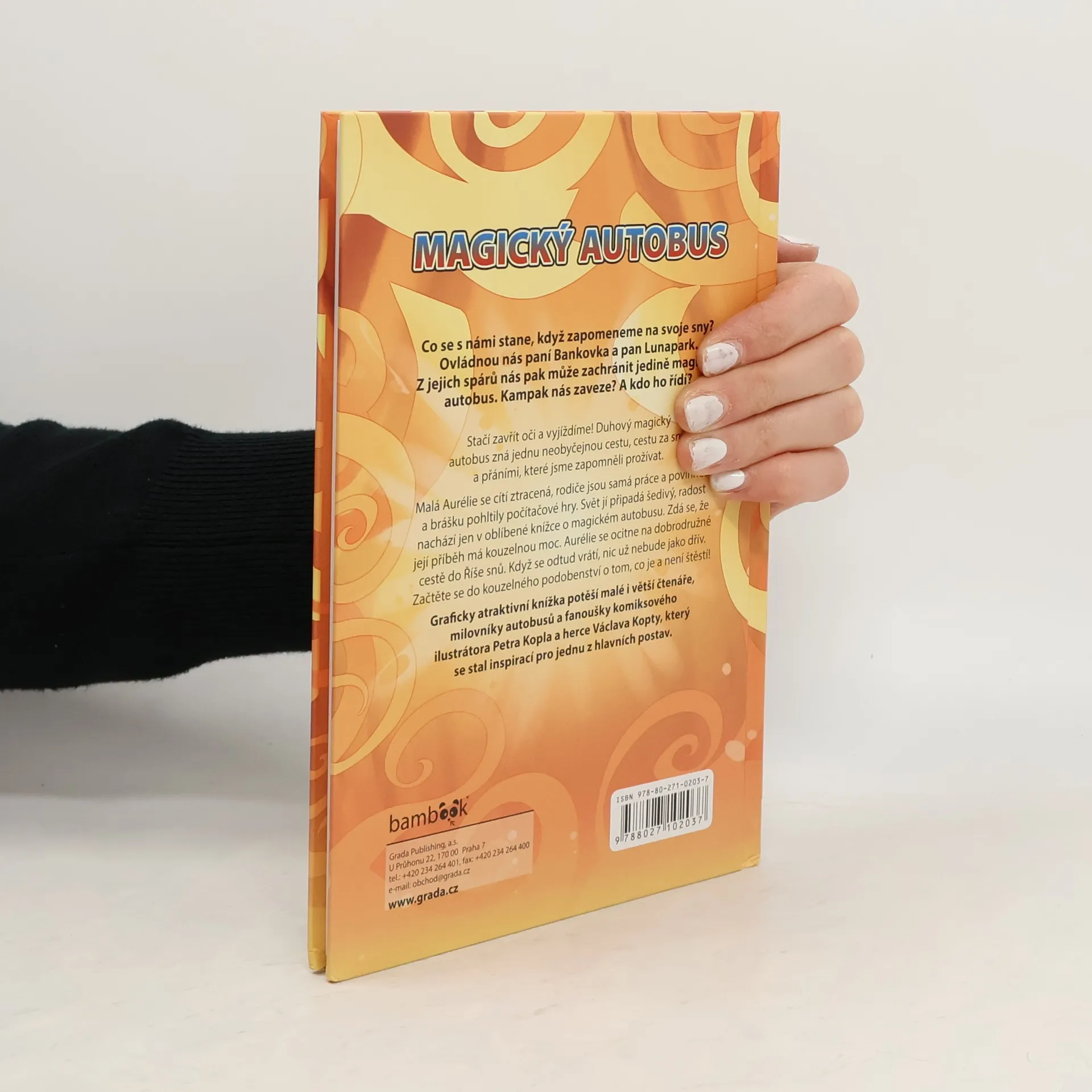 Stačí zavřít oči a vyjíždíme! Duhový magický autobus zná jednu zapomenutou cestu, cestu do snů a pohádkových příběhů, které jsme zapomněli prožívat. Malá Aurélie se cítí ztracená, rodiče jsou samá práce a povinnost a brášku pohltily počítačové hry. Svět jí připadá šedivý. Radost nachází jen v oblíbené knížce o magickém autobusu. Zdá se, že její příběh má kouzelnou moc. Aurélie se ocitne na dobrodružné cestě do Říše snů. Když se odtud vrátí, nic už nebude jako dřív. Začtěte se do kouzelného podobenství o tom, co je a není štěstí! Graficky atraktivní knížka potěší malé i větší čtenáře, milovníky autobusů a fanoušky ilustrátora Petra Kopla a herce Václava Kopty, který se stal inspirací pro jednu z hlavních postav.