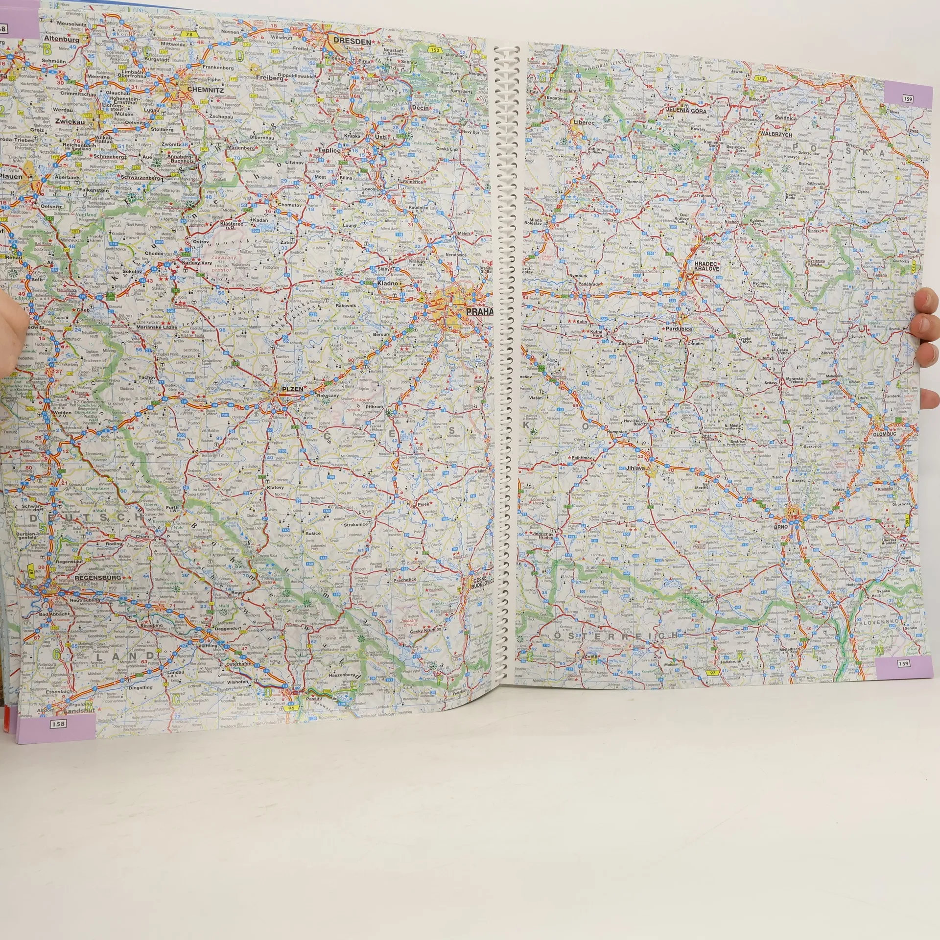 Panoramakarte Europa, 2 Übersichtskarten (physisch, politisch) Europa in 1:20 Mio, Europa Planungskarten 1:4,5 Mio, 28-sprachige Legende, Kartenteile 1:750.000, 1:1 Mio, 1:2 Mio, Ortsverzeichnis, Übersicht der Länderflaggen, 248 Seiten, flexibler Einband, Spiralbindung. Format 28,5 x 38,8 cm