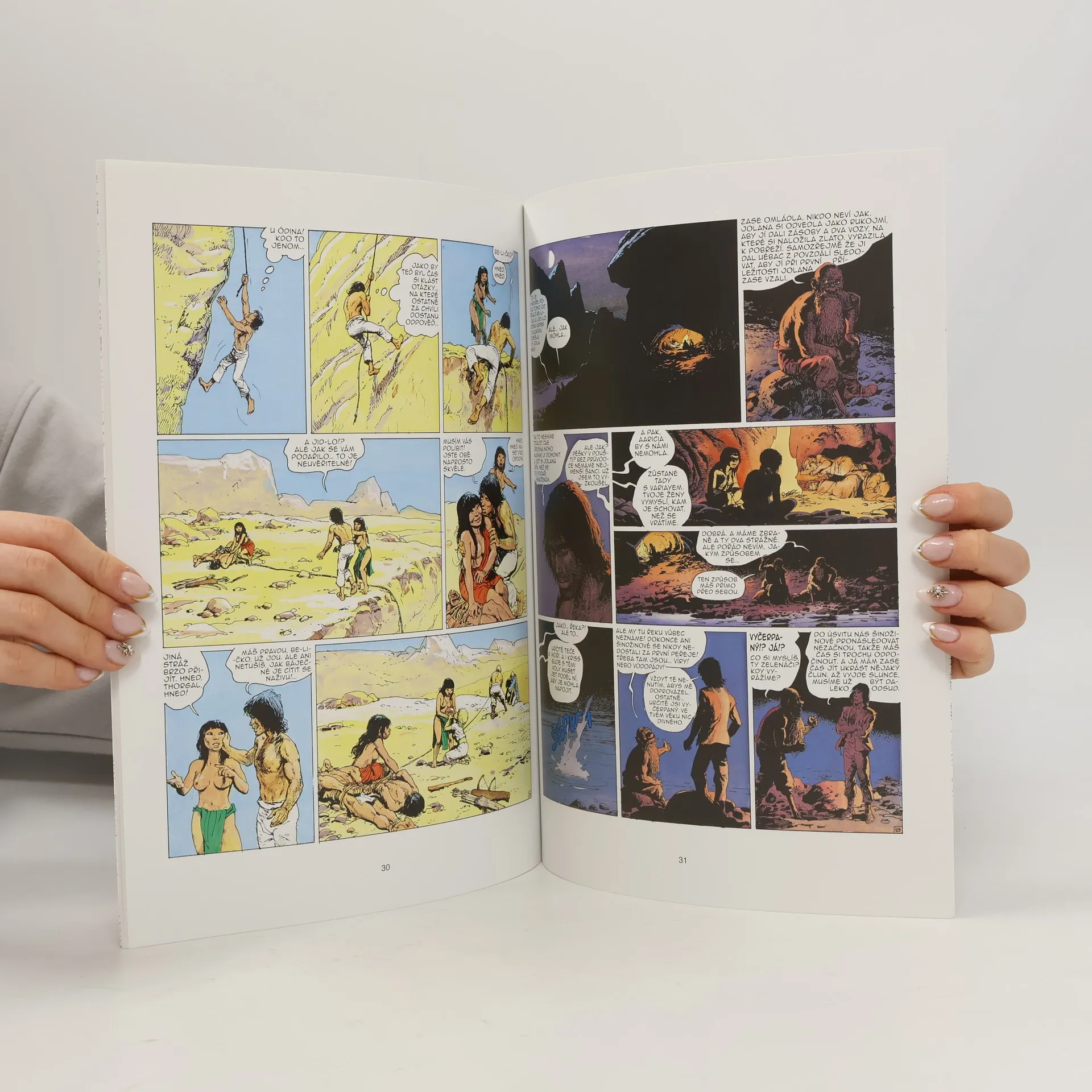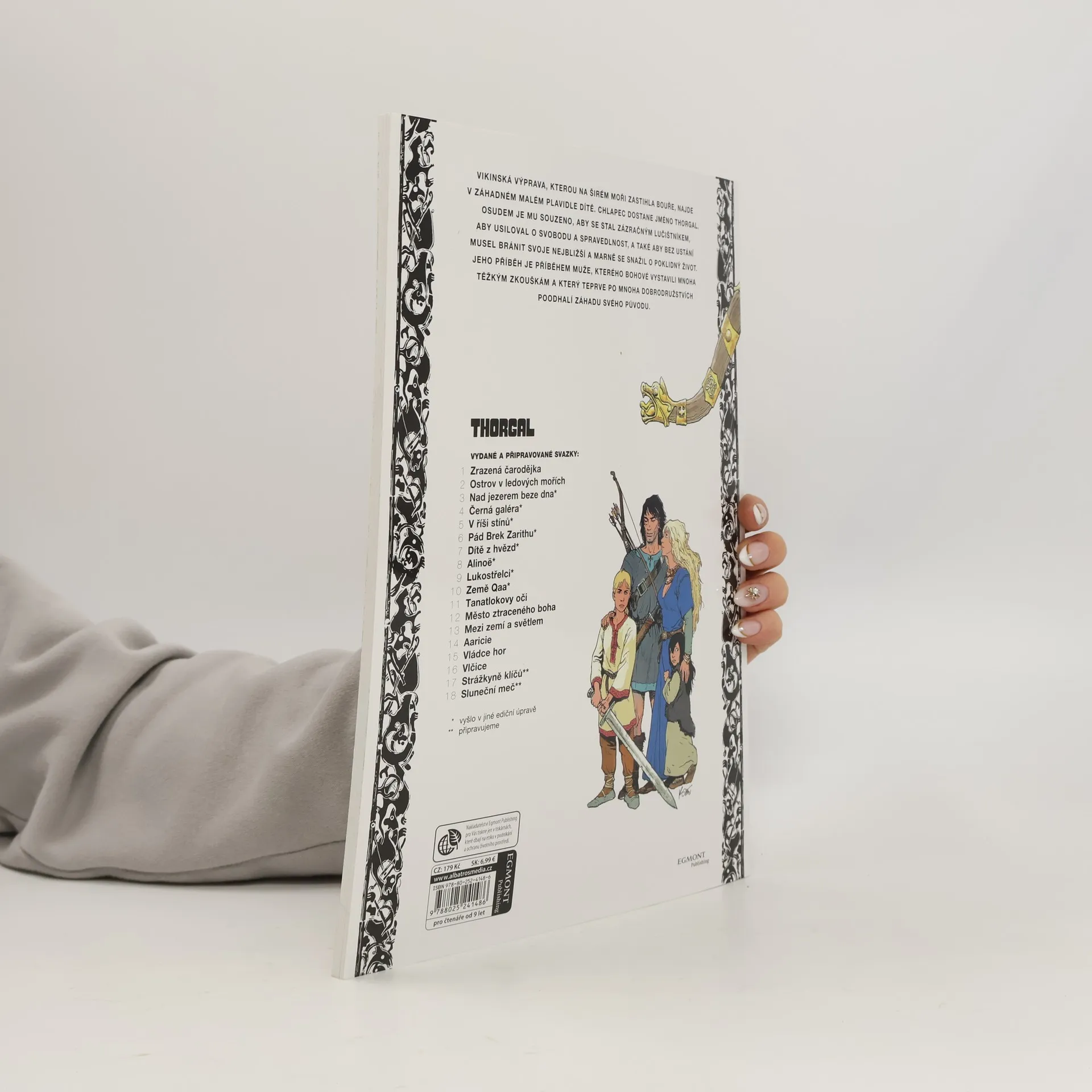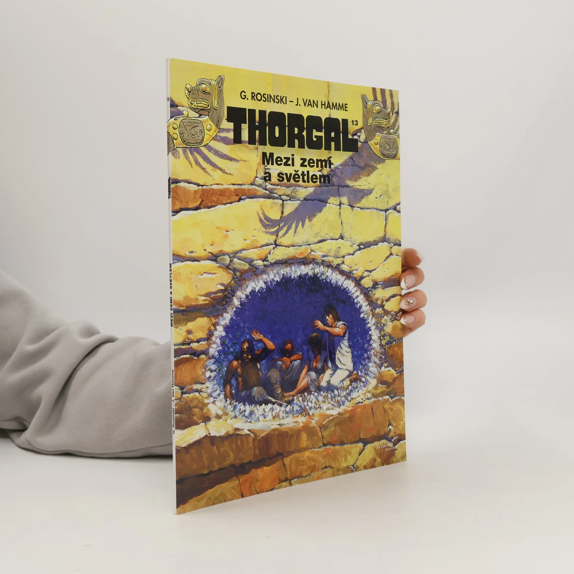 Komiksová sága o Thorgalovi se během desítek let své existence stala v Evropě bezmála kultovní klasikou díky jedinečným scénářům Jeana Van Hamma a imaginativní kresbě Grzegorze Rosińského. V závěrečném svazku cyklu Země Qaa s názvem Mezi zemí a světlem jsou Thorgal a jeho přátelé uvězněni na nepřístupném místě, kde je má čekat jistá smrt. Jak se jim podaří uniknout a zachránit Jolana před neupřímnými rádci a temnými silami?