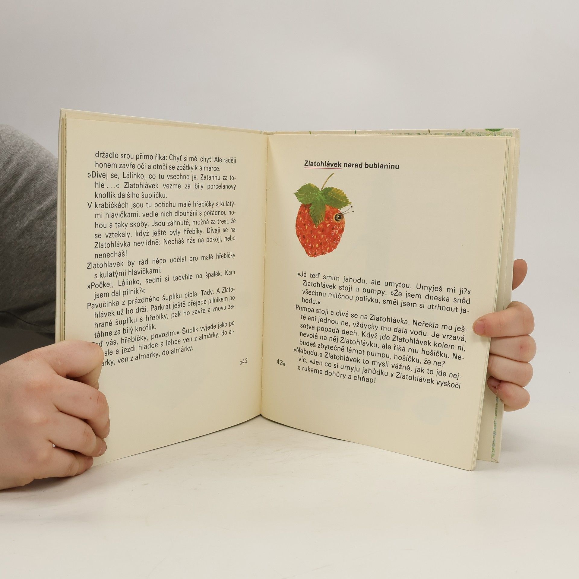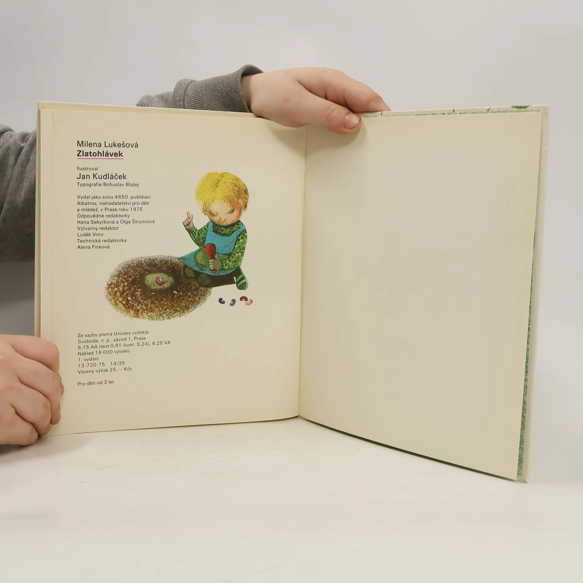 Vyprávění provází jedním dnem chlapce Zlatohlávka, který si na dvorku a na zahrádce vystačí při hře s pejskem a kočičkou sám, pozoruje i ostatní zvířata, všímá si předmětů kolem, učí se poznávat jejich funkci a tak se seznamuje s nejbližším okolím. Pro děti od 3 let.