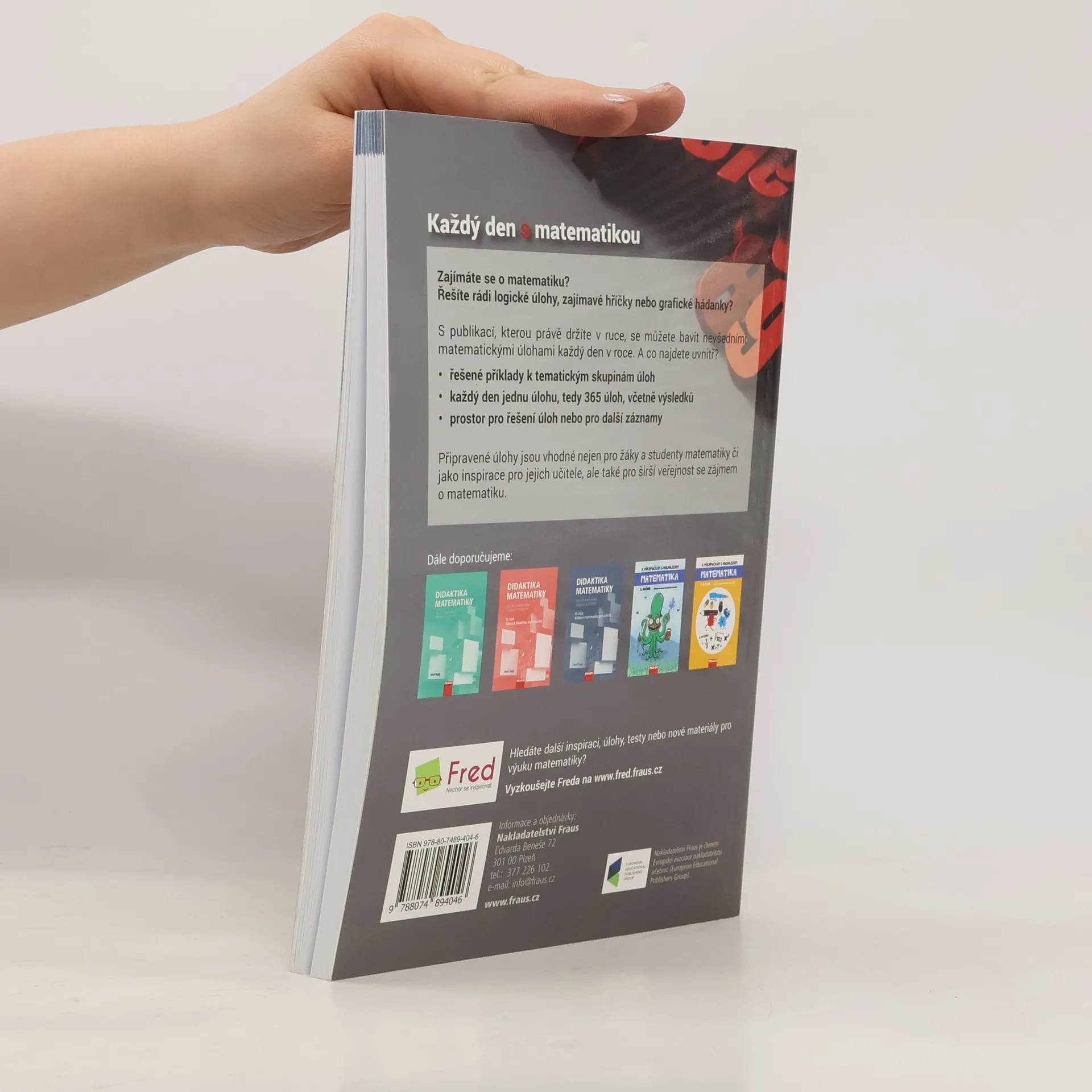 Zajímáte se o matematiku? Řešíte rádi logické úlohy, zajímavé hříčky nebo grafické hádanky? S publikací Každý den s matematikou se můžete bavit nevšedními matematickými úlohami každý den v roce. Co najdete uvnitř? •řešené příklady k tematickým skupinám úloh •každý den jednu úlohu, tedy 365 úloh, včetně výsledků •prostor pro řešení úloh nebo pro další záznamy Připravené úlohy jsou vhodné nejen pro žáky a studenty matematiky či jako inspirace pro jejich učitele, ale také pro širší veřejnost se zájmem o matematiku.