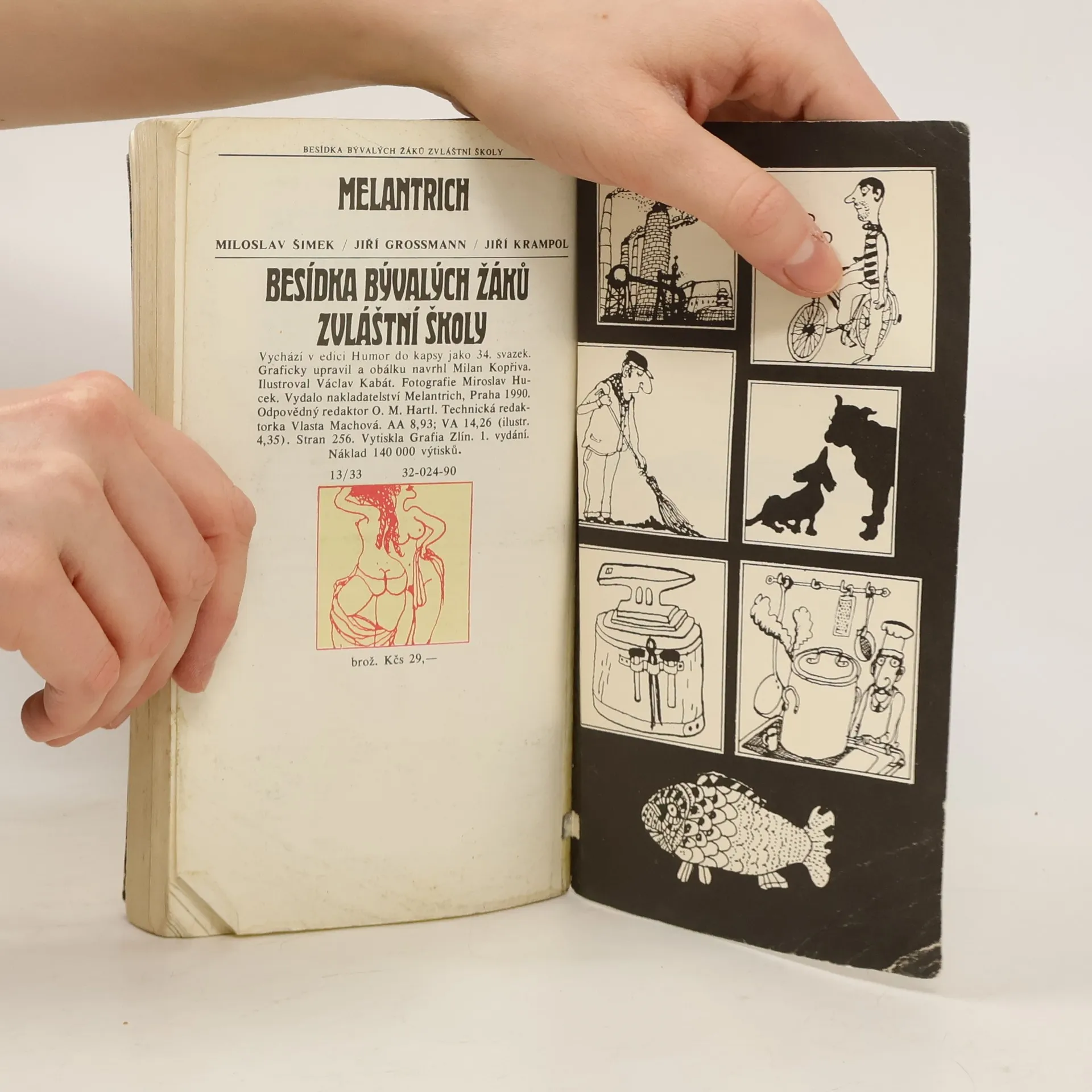 Kniha obsahuje povídky našich předních komiků Miloslava Šimka, Jiřího Grossmanna a Jiřího Krampola. Dělí se na dvě části. V první části jsou povídky, které napsal v kavárně Slavie MŠ s již zesnulým JG. V druhé polovině publikace se setkáváme s humornými příběhy MŠ a JK. Všichni tři herci působili resp. působí v divadle Semafor, kde uvedli hry „Besídka žáků zvláštní školy“ resp. „Besídka bývalých žáků zvláštní školy“, podle nichž byla napsána tato kniha.