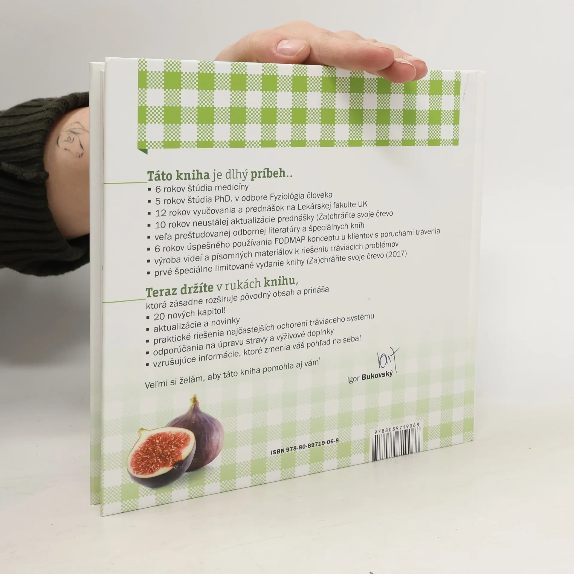 Doba tráviacich problémov vyžaduje nový pohľad na ich riešenia, ale aj nový pohľad seba, na svoje jedlo a svoje životné návyky. MUDr. Igor Bukovský, PhD. prináša finálnu verziu pôvodnej, mimoriadne úspešnej knihy „Zachráňte svoje črevo“, v ktorej nájdete všetko podstatné, čo sa týka porúch a ochorení tráviaceho traktu – od úst až po konečník, od zápalu ďasien až po varixy a rakovinu hrubého čreva. Vrátane praktických návodov na zloženie stravy a používanie výživových doplnkov po operáciach brucha, žalúdka a čreva. Táto kniha je dlhý príbeh: 6 rokov štúdia medicíny 5 rokov štúdia PhD. v odbore Fyziológia človeka 12 rokov vyučovania a prednášok na Lekárskej fakulte 10 rokov neustálej aktualizácie prednášky (Za)chráňte svoje črevo! veľa preštudovanej odbornej literatúry a špeciálnych kníh 6 rokov úspešného používania FODMAP konceptu u klientov s poruchami trávenia výroba videí a písomných materiálov k riešeniu tráviacich problémov prvé špeciálne limitované vydanie knihy (Za)chráňte svoje črevo (2017) Táto kniha, ktorú sa chystáte kúpiť, zásadne rozširuje pôvodný obsah a prináša: 20 nových kapitol – určite nazrite do Obsahu, ktorý nájdete v grafickej informácií o knihe aktualizácie a novinky z výskumu praktické riešenia najčastejších ochorení tráviaceho systému odporúčania na úpravu stravy a vhodné výživové doplnky vzrušujúce informácie, ktoré zmenia váš pohľad na seba!
