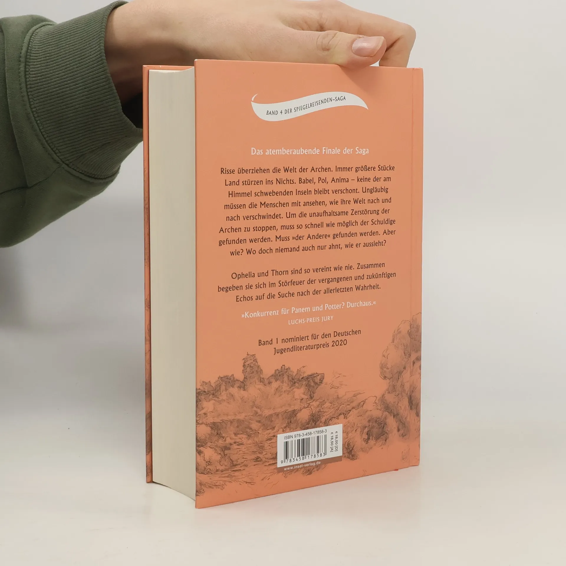 Risse überziehen die Welt der Archen. Einer jagt den nächsten, die Abgründe werden immer größer. Babel, Pol, Anima – keine der Archen bleibt verschont. Die Bewohner müssen ungläubig mitansehen, wie ihre Welt nach und nach auseinanderbricht. Um die unwiederbringliche Zerstörung der Archen zu stoppen, muss so schnell wie möglich der Schuldige gefunden werden. Muss »der Andere« gefunden werden. Aber wie? Wo doch niemand auch nur weiß, wie er aussieht? Ophelia und Thorn sind so vereint wie nie. Zusammen begeben sie sich auf unbekannte Wege, wo sie die Echos der Vergangenheit und der Gegenwart zum Schlüssel all der Rätsel führen werden. Das ungeheuerliche Finale der Saga der Spiegelreisenden.
